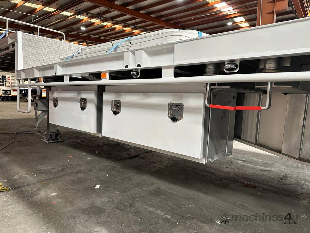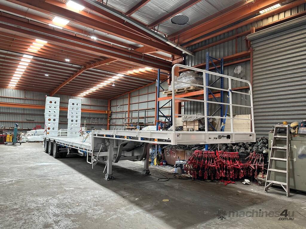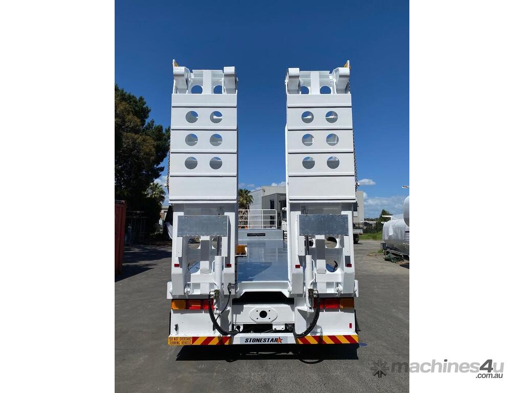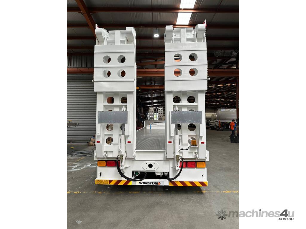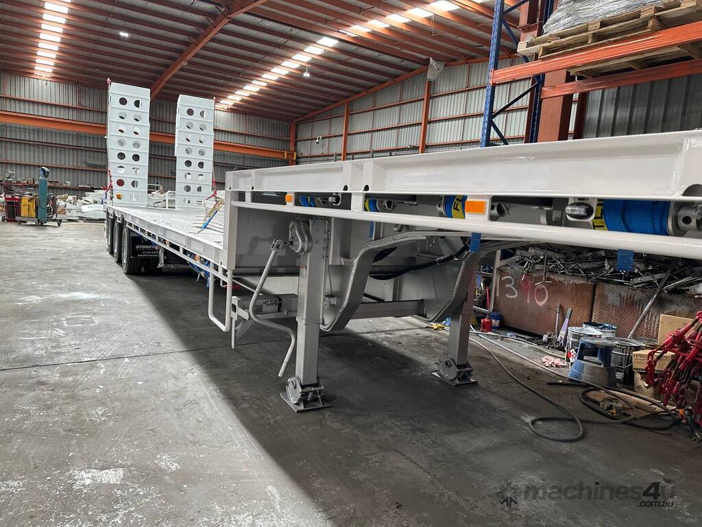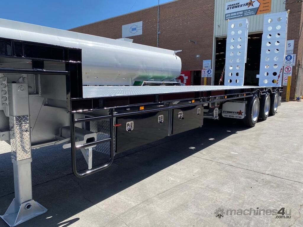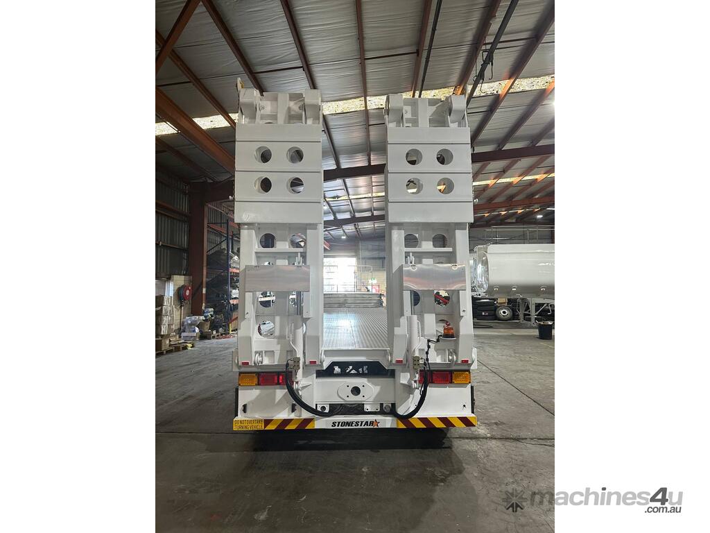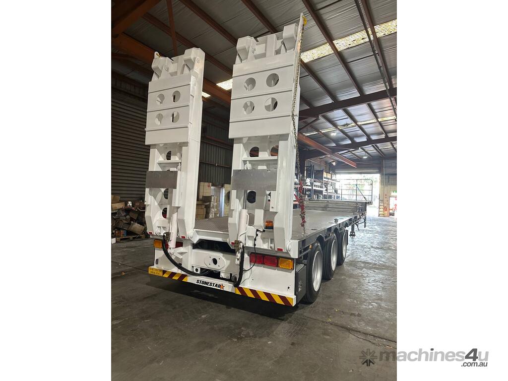 Introducing the brand new Stonestar Drop Deck 45ft Trailer, a high-performance solution engineered for your heavy-duty transport needs. This trailer is built with K Hitch heavy-duty air bag suspension and K Hitch axles, providing a smooth and stable ride even under challenging conditions. Equipped with EBS brakes, a Jost king pin, and high-speed landing legs, it ensures safe and efficient operation. The trailer features high-standard steelwork, mudflaps, and 3-way container pins, making it a versatile choice for various hauling tasks.