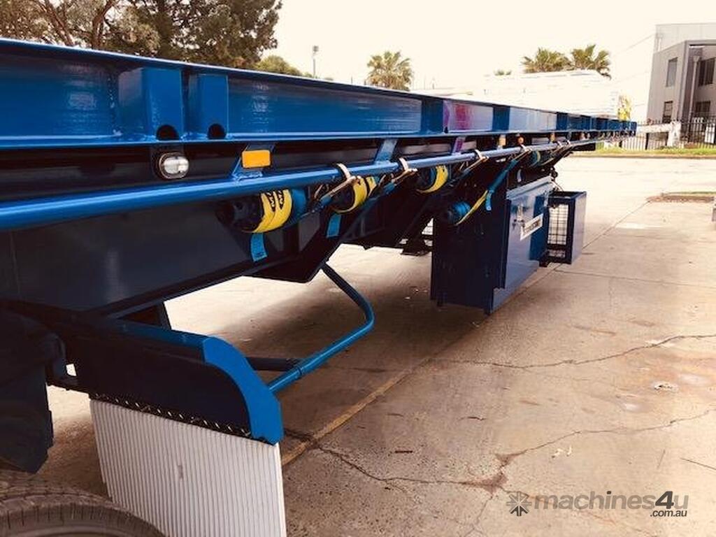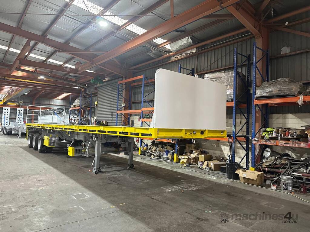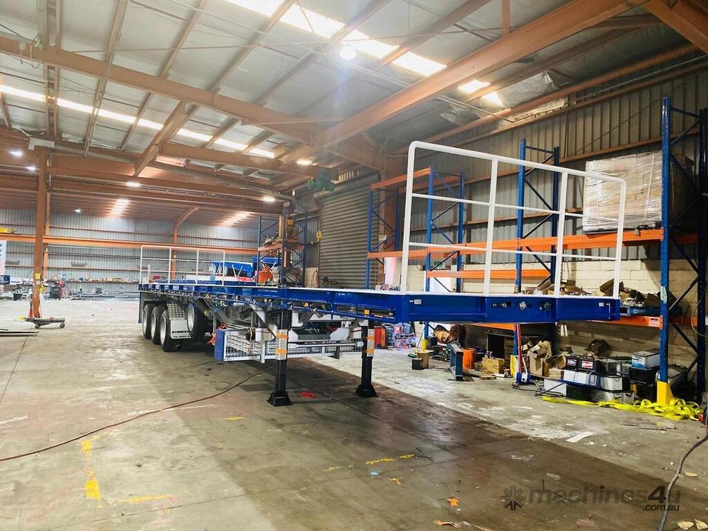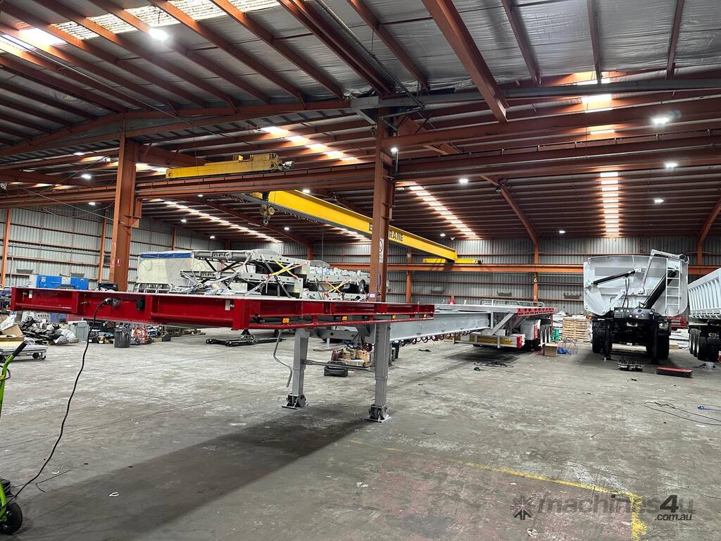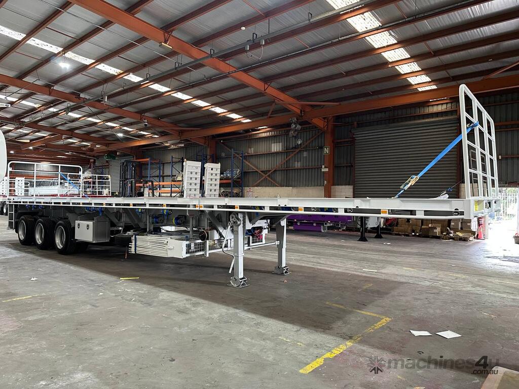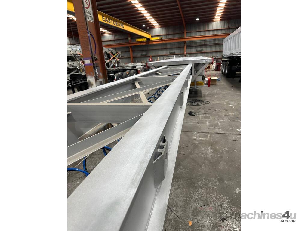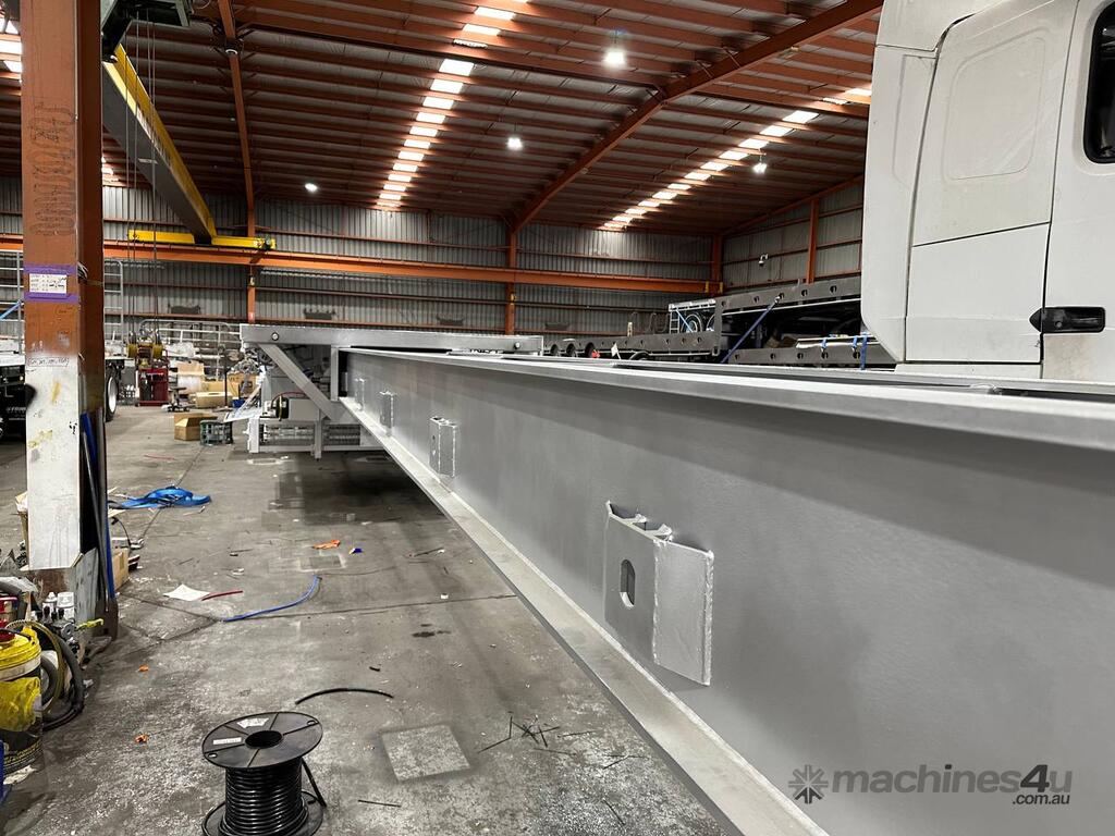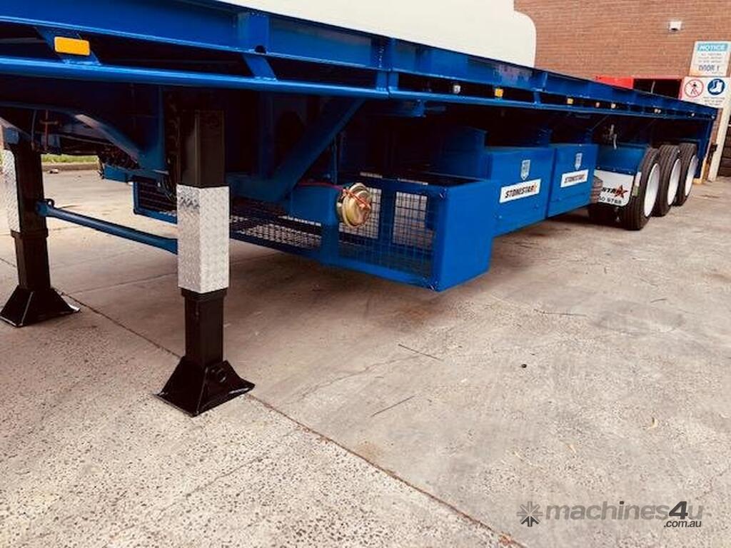 Introducing the brand new Stonestar Extendable Flat Top trailer, designed to provide unparalleled versatility and strength for your transport needs. This trailer extends from 13.575 meters to an impressive 19.6 meters, accommodating a wide range of cargo sizes. With a 40-tonne ATM capacity, it is built to handle heavy loads with ease. The trailer features an auto air-controlled locking pin, ensuring secure extension and retraction. The checker-plate steel floor and high tensile steel chassis offer exceptional durability and reliability.