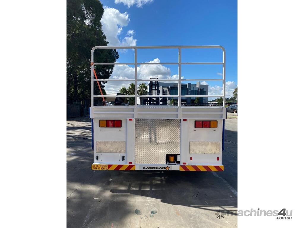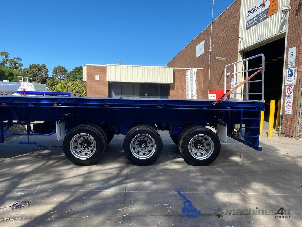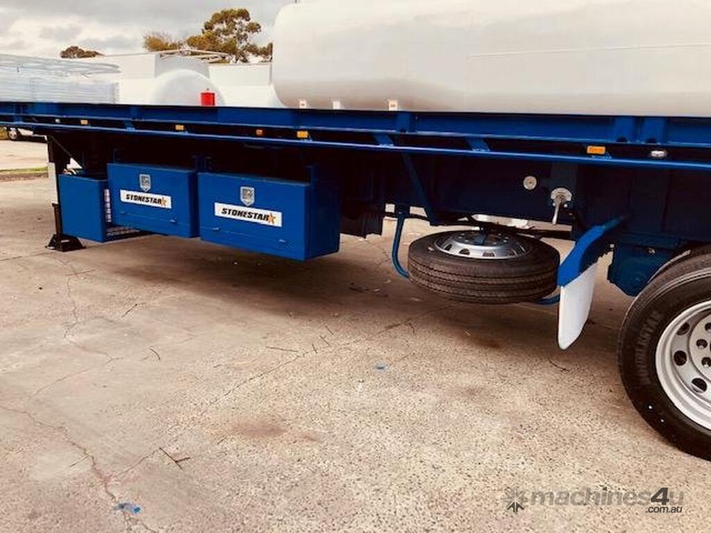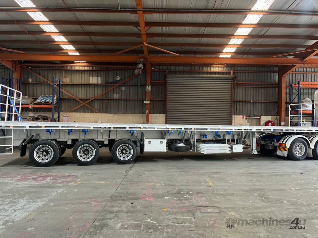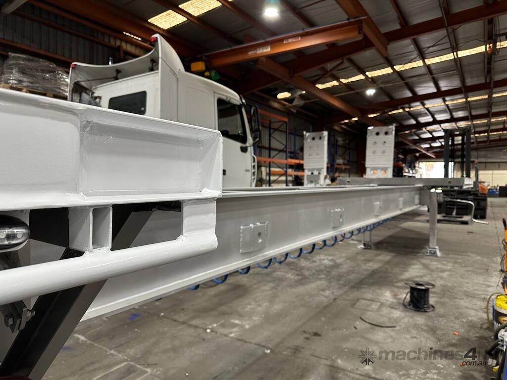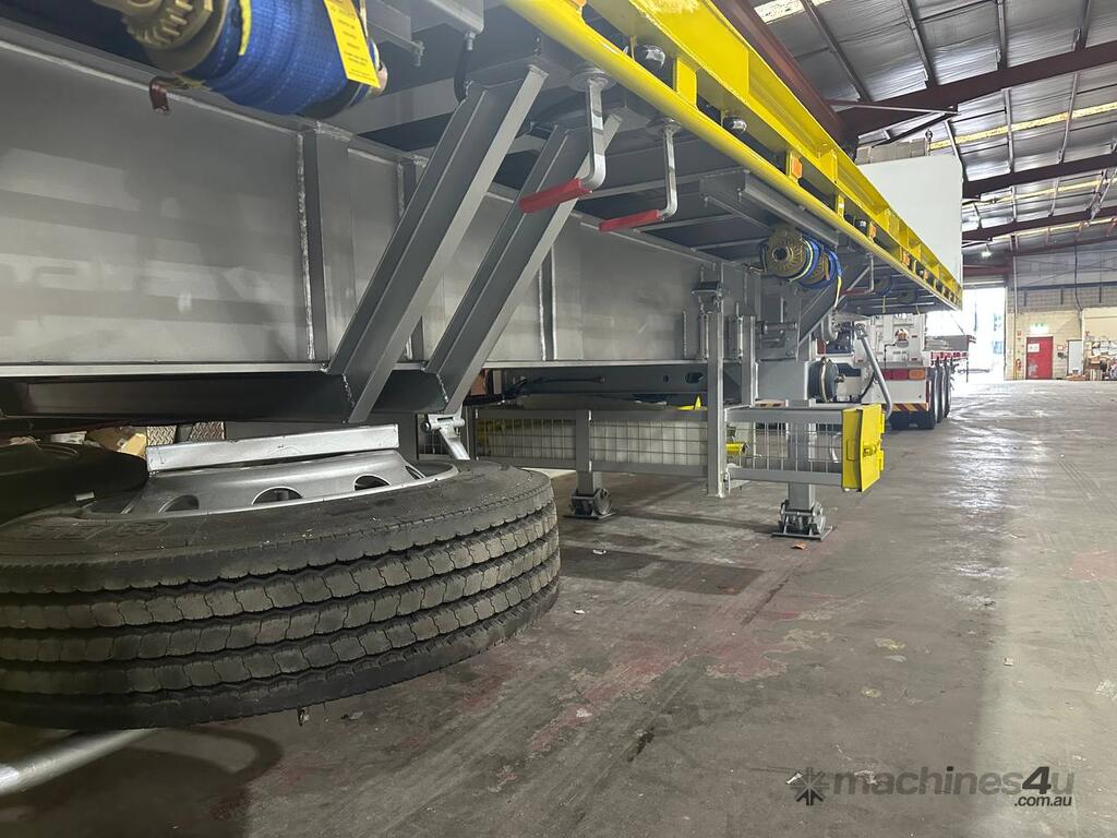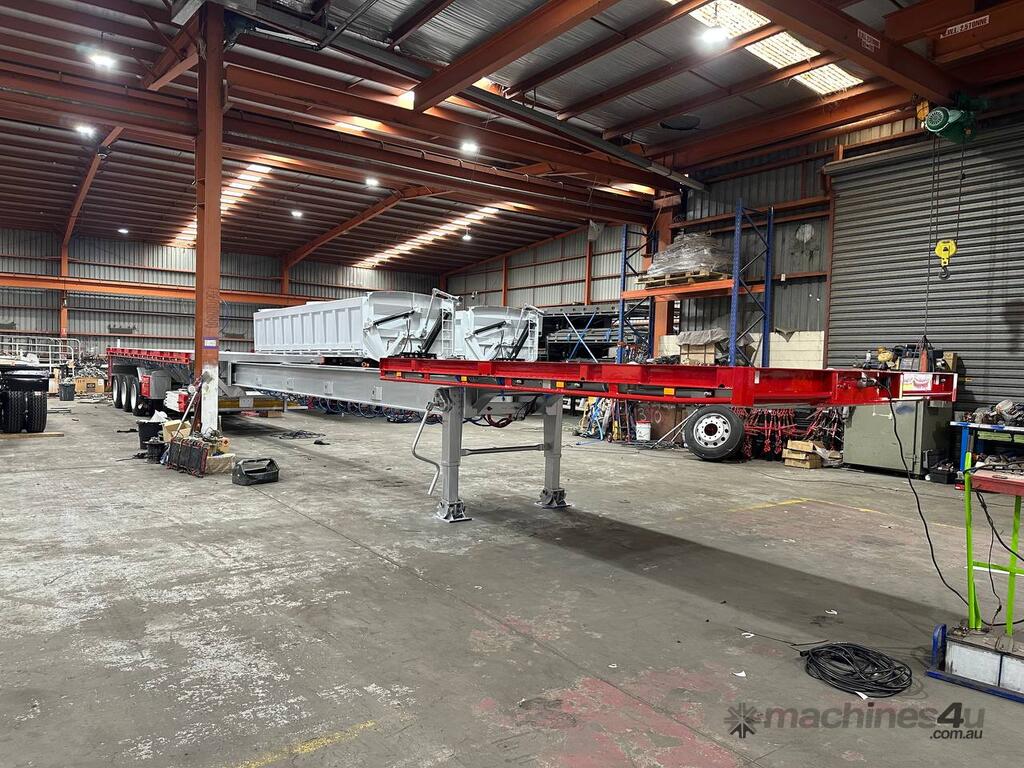 Introducing the brand new Stonestar Extendable Flat Top trailer, designed to provide unparalleled versatility and strength for your transport needs. This trailer extends from 13.575 meters to an impressive 19.6 meters, accommodating a wide range of cargo sizes. With a 40-tonne ATM capacity, it is built to handle heavy loads with ease. The trailer features an auto air-controlled locking pin, ensuring secure extension and retraction. The checker-plate steel floor and high tensile steel chassis offer exceptional durability and reliability.