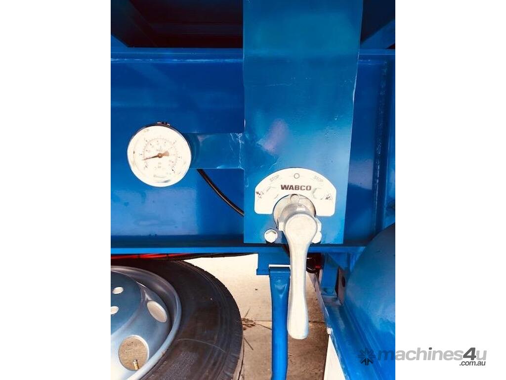 Equipped with side gate pockets, container pins, and a toolbox, this trailer is designed for maximum convenience and functionality. The heavy-duty K-Hitch axle and air bag suspension provide a smooth and stable ride, while the EBS brakes ensure safe stopping power. The trailer also includes Jost two-speed landing legs and a two-position king pin, along with 3-way pins for added flexibility. LED lights enhance visibility, and the two-pack paint finish provides a durable, attractive appearance.