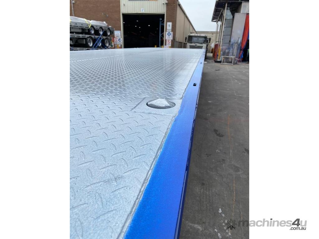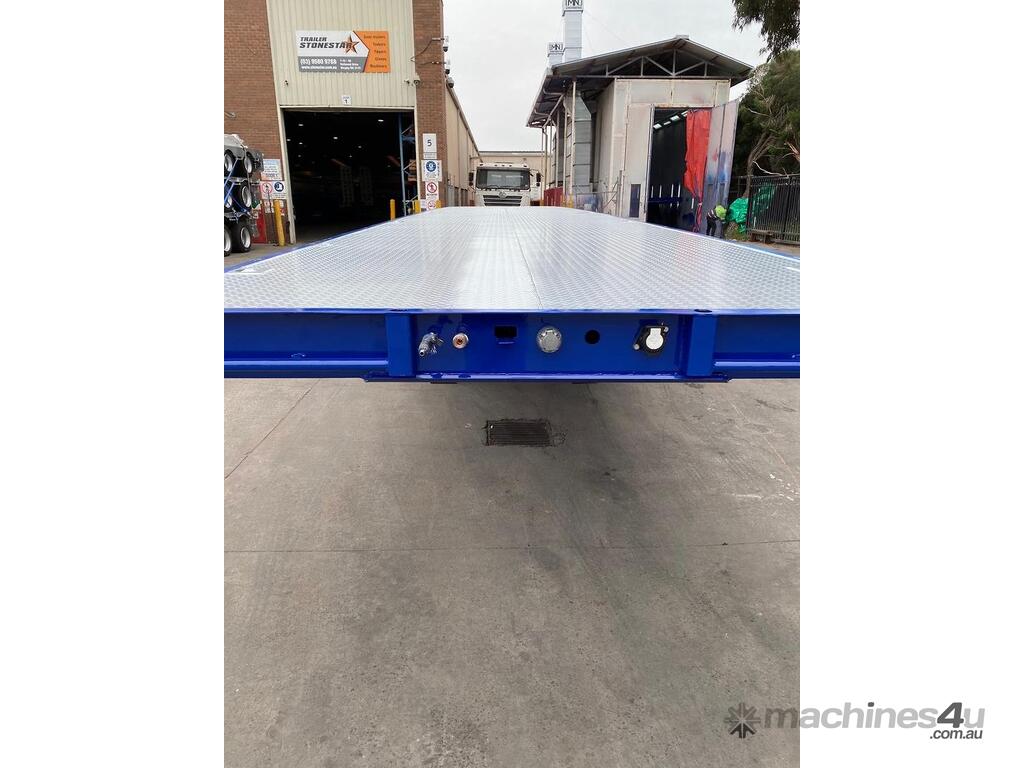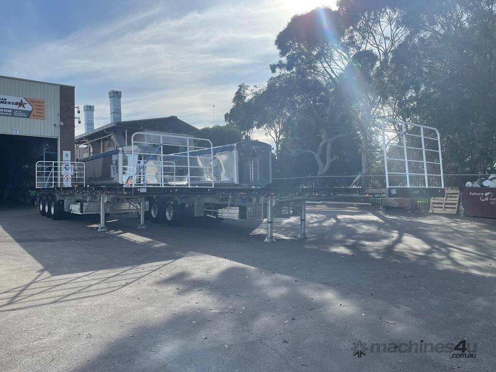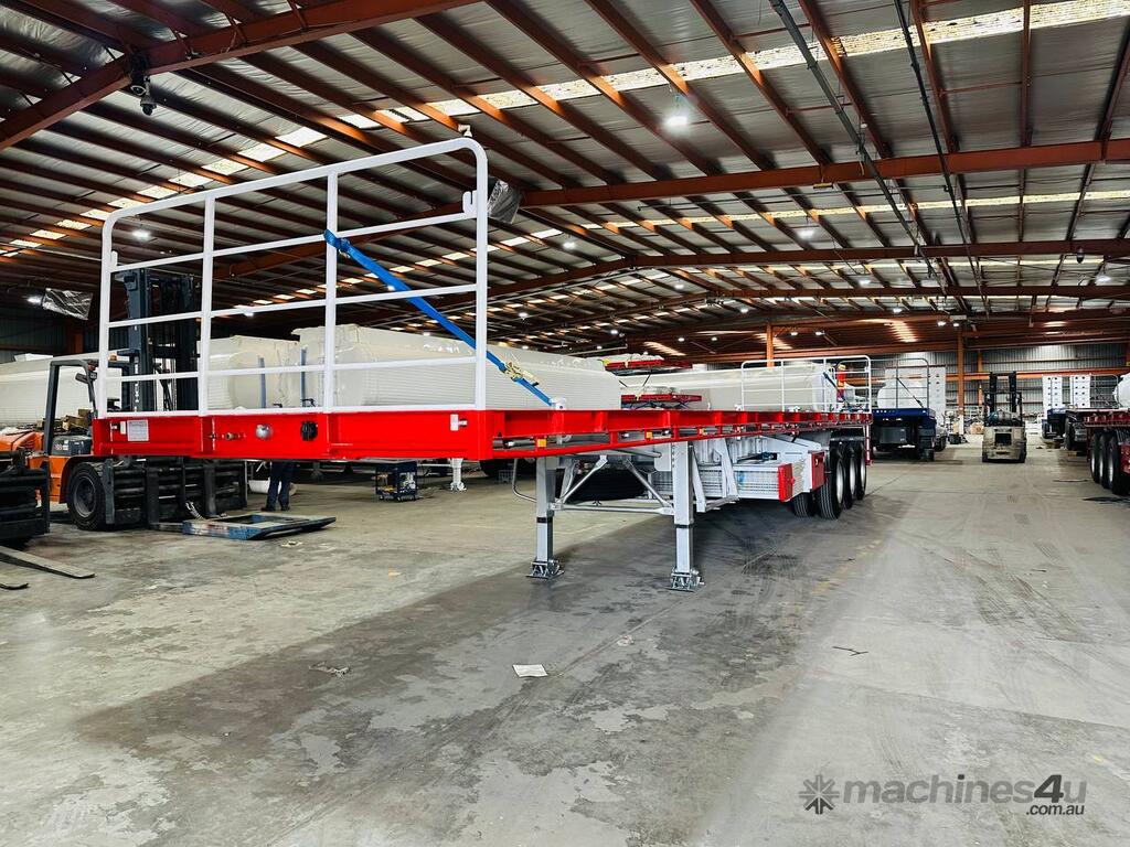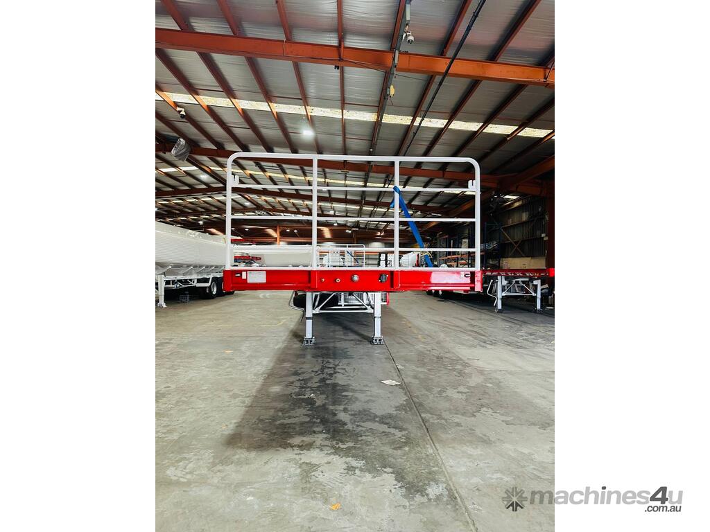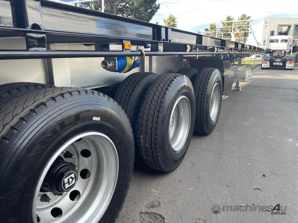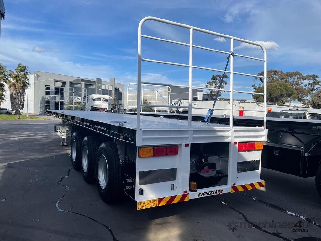Introducing the brand new Stonestar Flat Top 45 Foot trailer, built to offer superior strength and versatility for your heavy-duty transport needs. With a 40-tonne ATM capacity, this trailer is equipped with a checker-plate steel floor and a high-standard steel chassis, ensuring durability and reliability. It features side gate pockets and 3-way container pins, providing flexibility for securing various types of cargo.