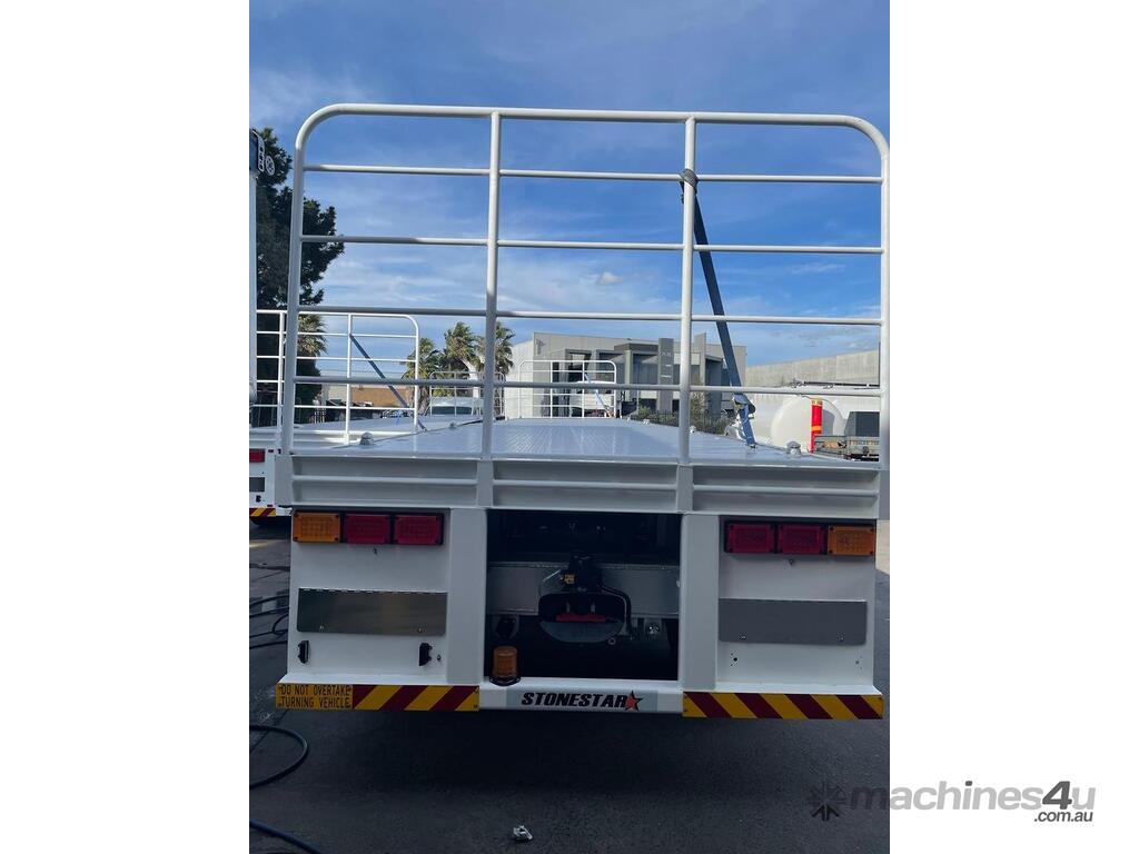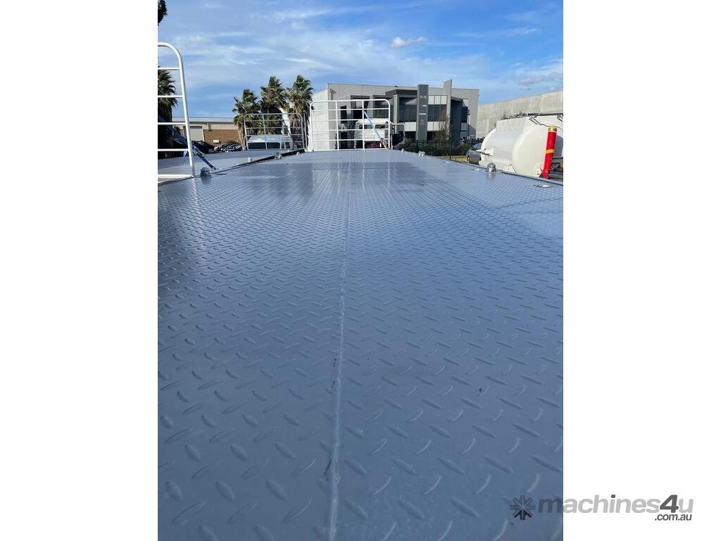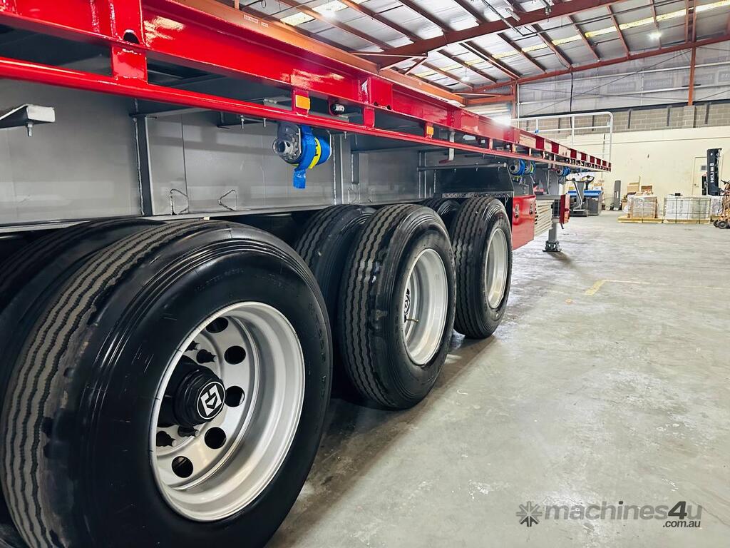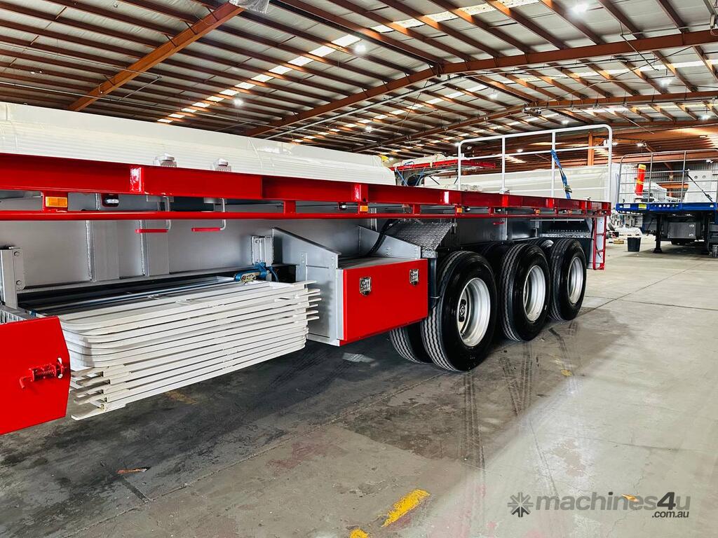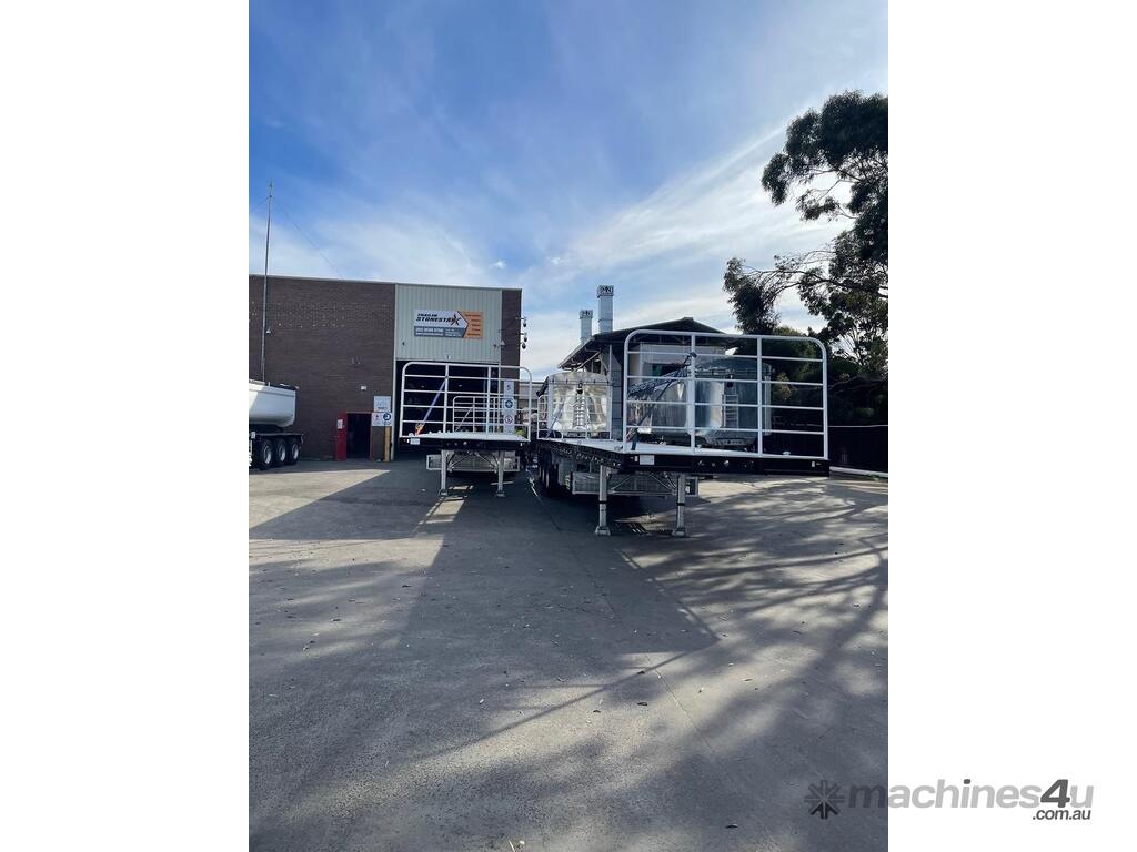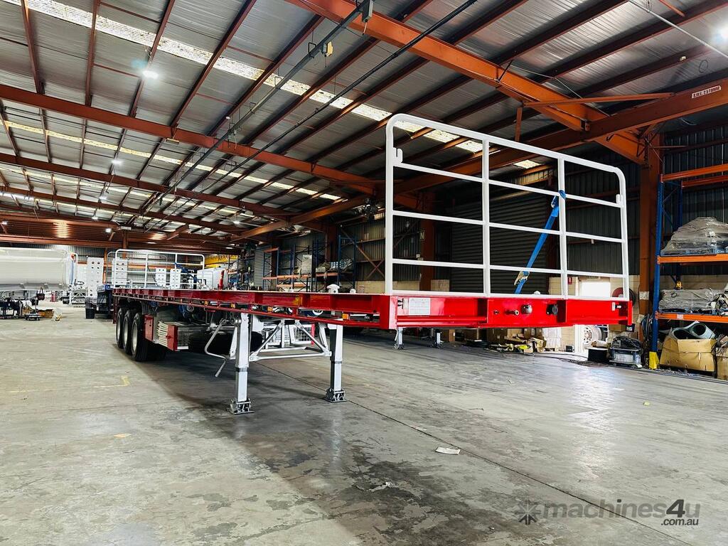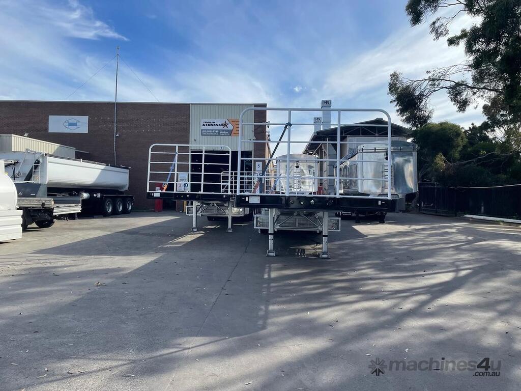 Introducing the brand new Stonestar Flat Top 45 Foot trailer, built to offer superior strength and versatility for your heavy-duty transport needs. With a 40-tonne ATM capacity, this trailer is equipped with a checker-plate steel floor and a high-standard steel chassis, ensuring durability and reliability. It features side gate pockets and 3-way container pins, providing flexibility for securing various types of cargo.