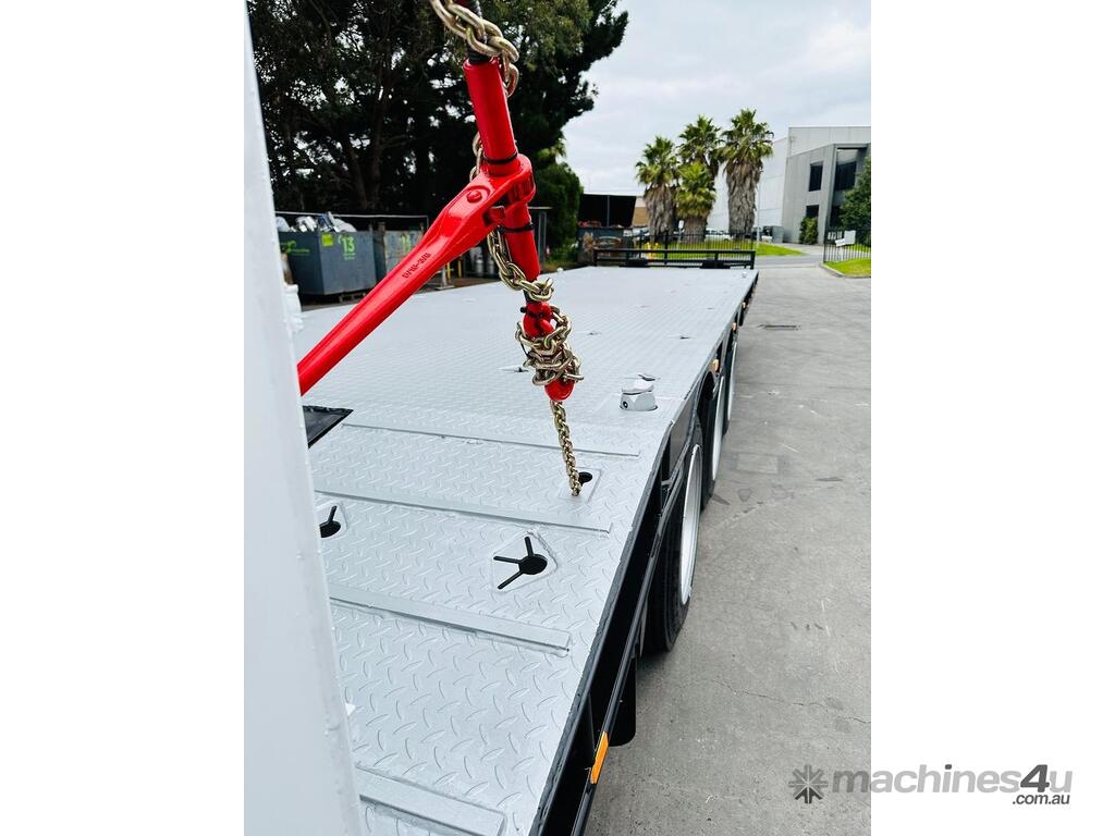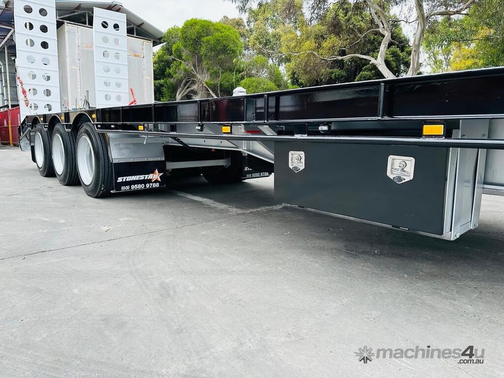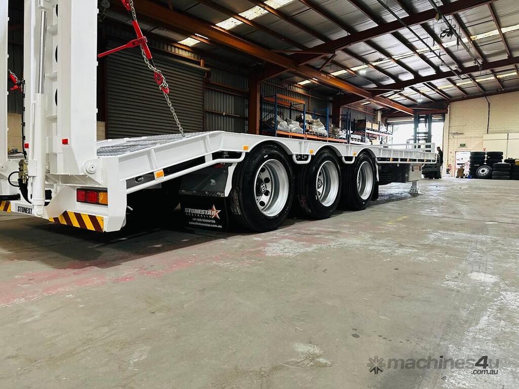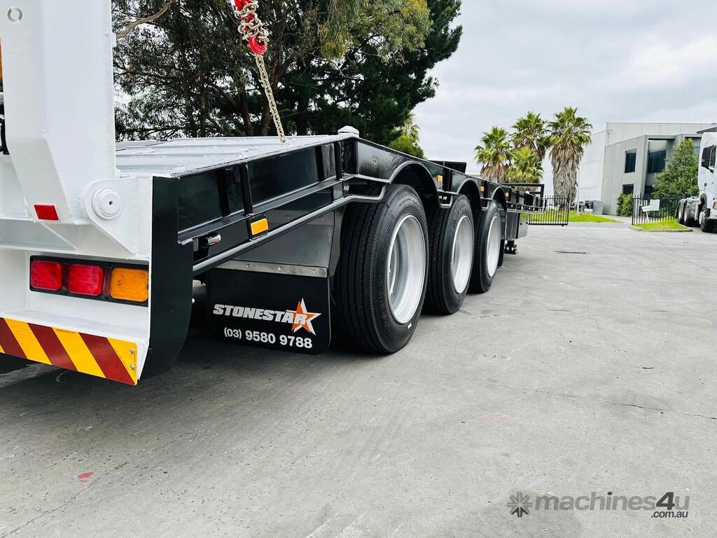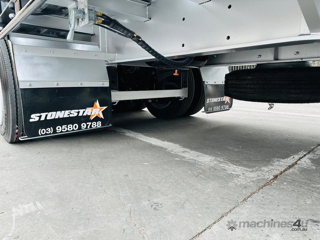Introducing the brand new Stonestar Tri Axle Tag Trailer, built for durability and efficiency in heavy-duty transport. This trailer features K Hitch airbag suspension and 22.5 axles, ensuring a smooth and stable ride even under demanding conditions. It is equipped with 10-stud steel wheels and 255 tyres for robust performance.