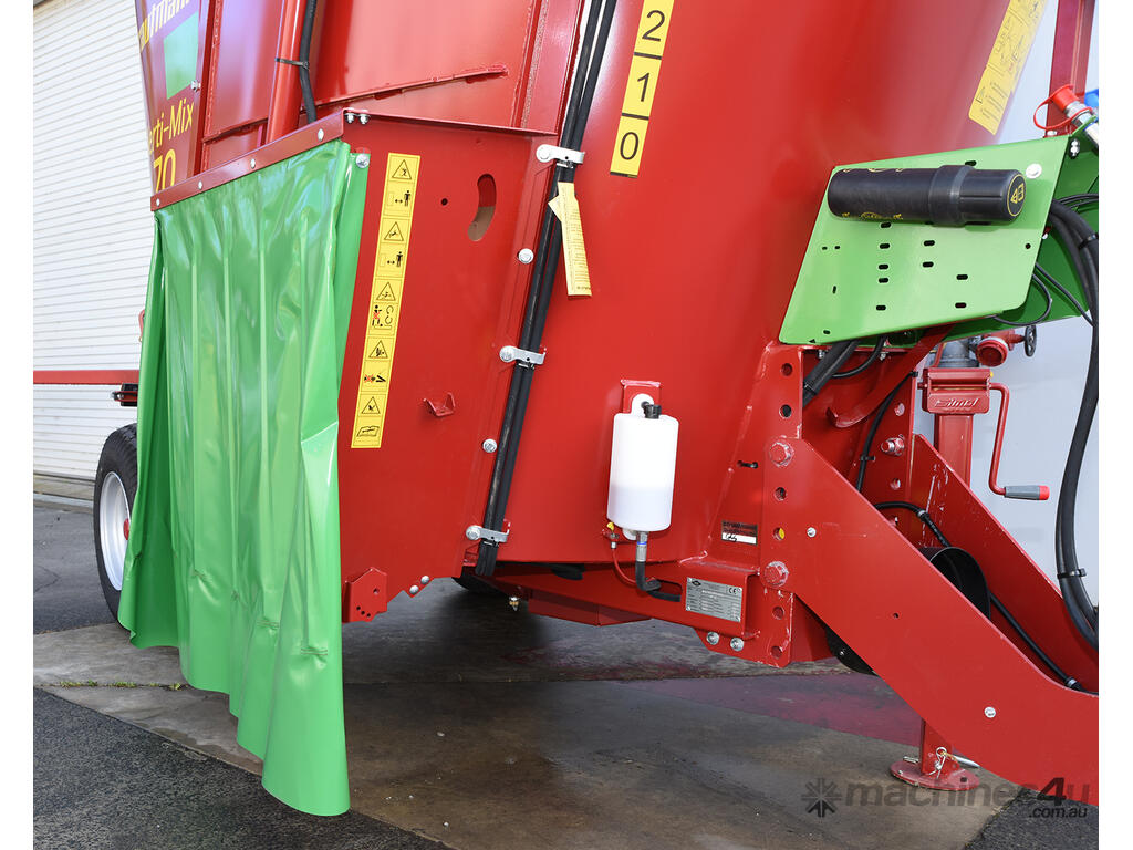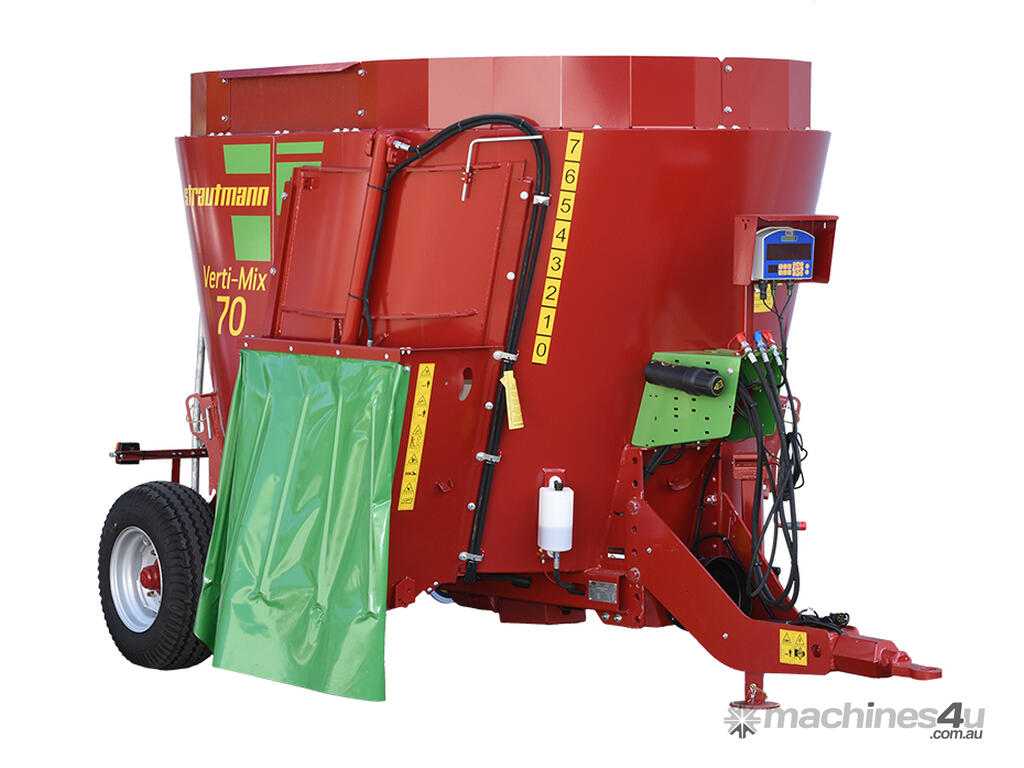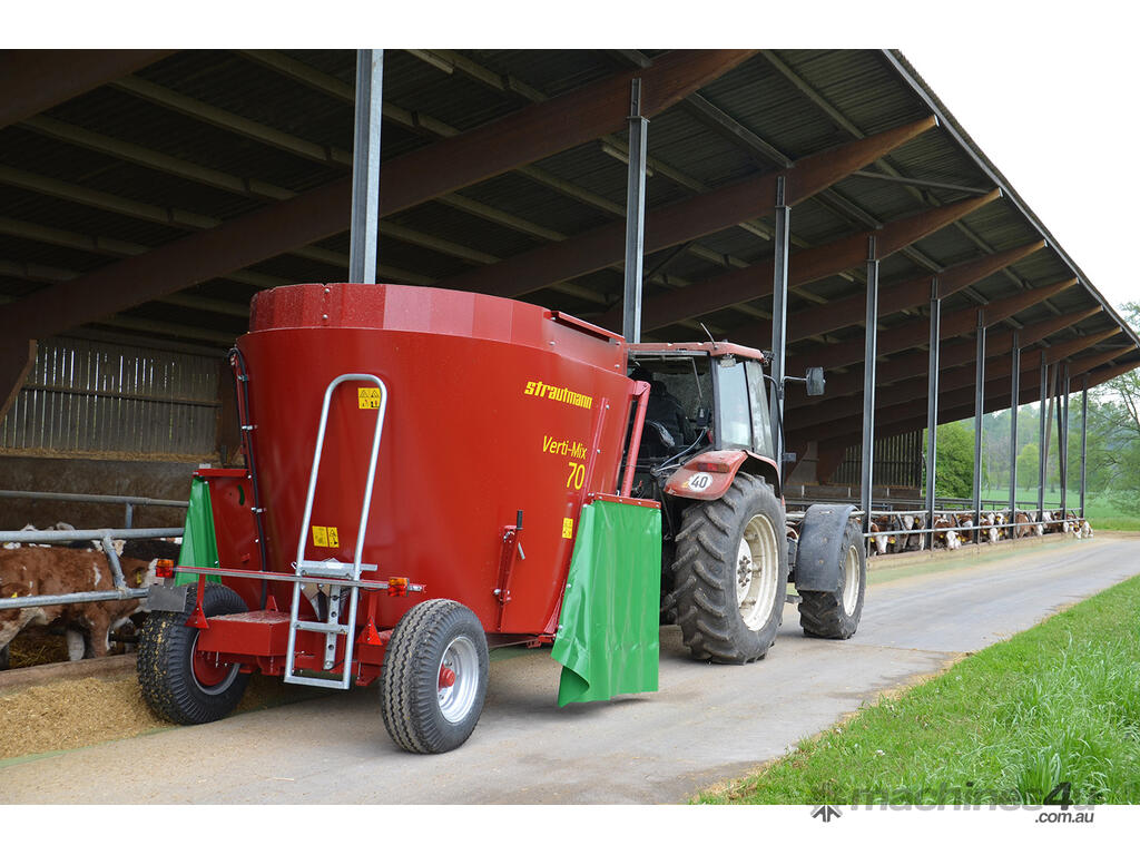 The Verti-Mix 70 is ideal for the small farmer with limited tractor horsepower, with a low PTO requirement of only 45hp. Suitable for stud farms getting stock ready for sale, cattle, sheep, goat, and smaller farms having opportunity supplement feeding when paddock feed is in short supply, or finishing stock off ready for market. The Strautmann Verti-Mix 70 feed mixer, featuring the Vario2 fast mixing stepped auger, has been built to suit Australian paddock conditions, with an Australian history of over 30 years.