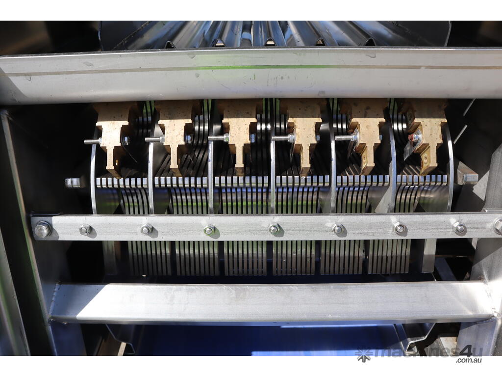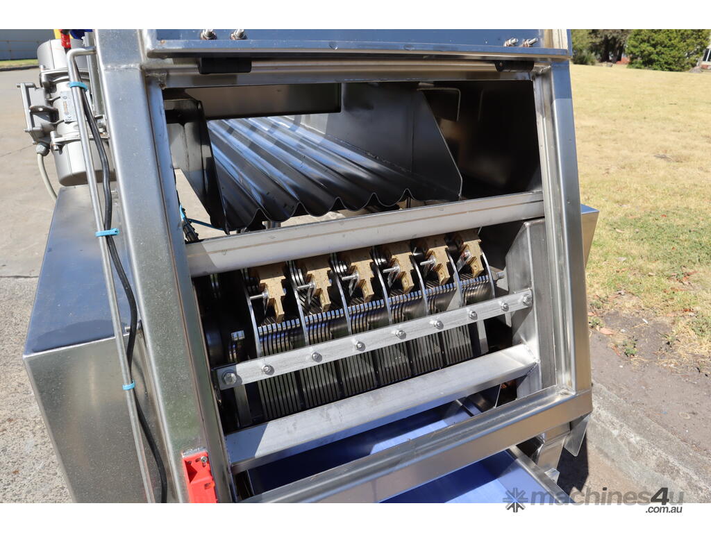 It is vibratory fed, 6 channels, with an outfeed conveyor at the end.