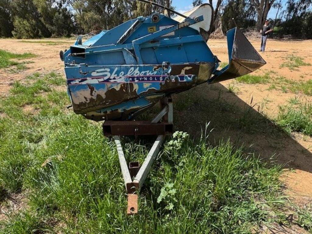 Shelbourne Reynolds 20'. on fabricated trailer, stainless fingers, stainless hood, adaptor for JD9650. Serial no: 866019, Adaptor Serial no: 666307. For more information contact Michael - . Located Coleambally.