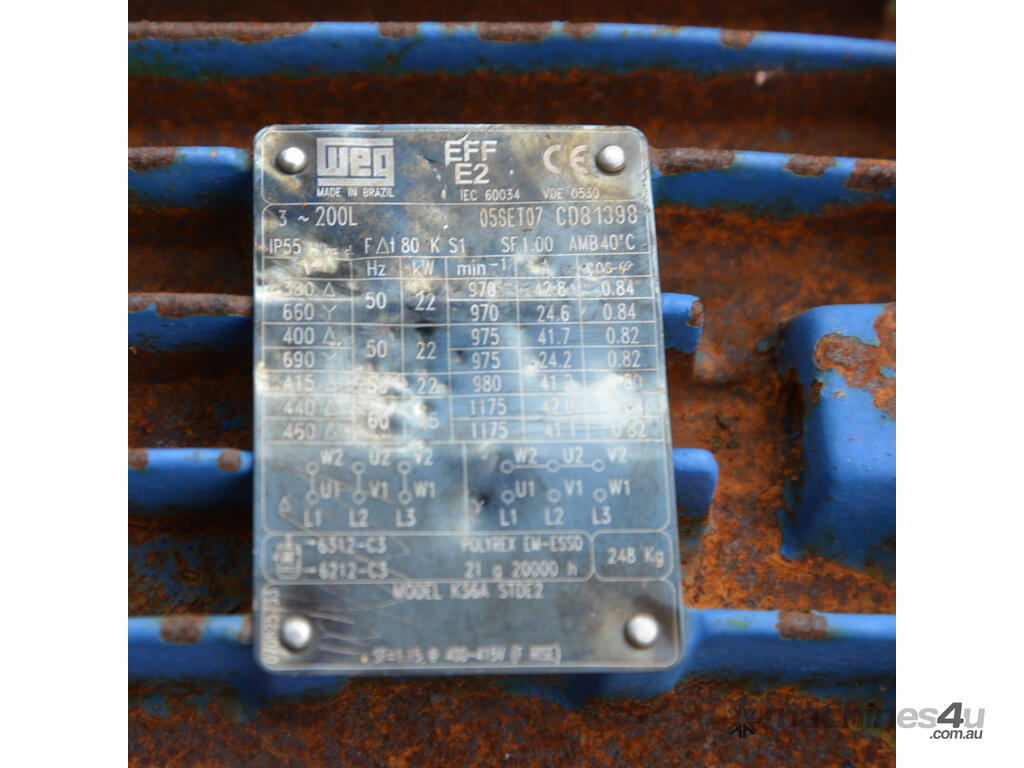 Sumitomo GEARBOX 29:1 CHHJ-6215-20/V6D 100mm shaft + 6 POLE 22kW WEG MOTOR :      $3,727 AUD($4,100 Inc. GST)