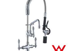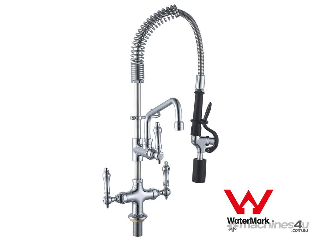 Sunmixer Pre Rinse Unit with Add-on Faucet and 152mm Swing Nozzle T98001MN-2C Key Features Water Efficiency Star Rating: ??? Mini pre-rinse unit Deck-mounted type Heavy-duty construction 7inch (180mm) riser 22inch (560mm) flexible stainless-steel hose Spray valve The product includes a check valve to prevent cross-flow Add-on faucet, swing nozzle with 6inch (152mm) length The spray valve conforms to ANSI / ASTN F2324-03 Ideal for food service, commercial kitchens, restaurants, and hotel applications Spring body Finger Hook for Spray Head Can connect to both hot water and cold water Watermark certified product sticker Certified Product Warranty: 2 Years Parts Only Price: $589 | Manufacturer: Sunmixer | Warranty: 2 Years Parts Only