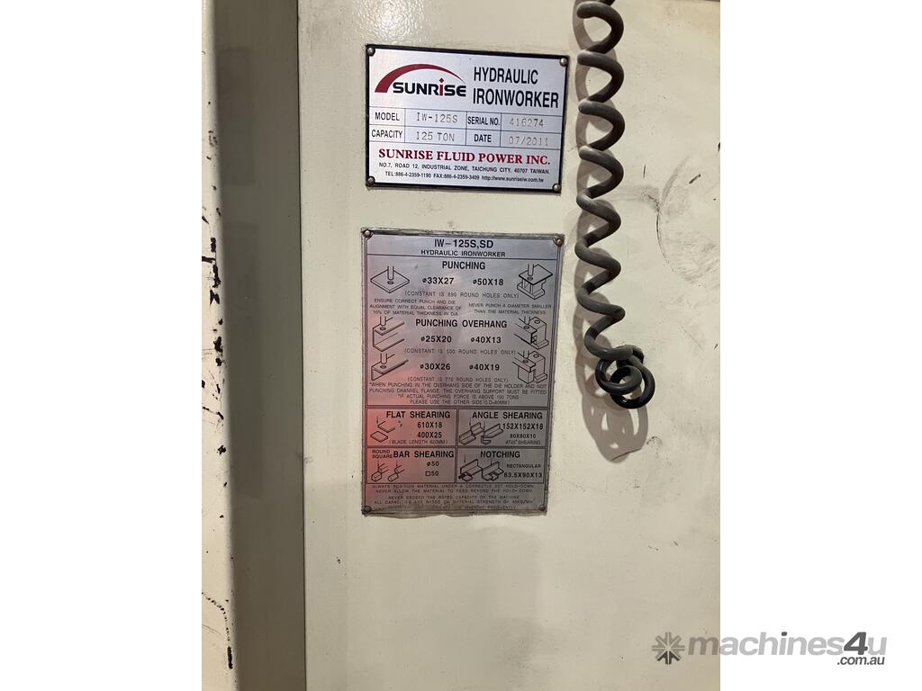 Sunrise Punch and Shears 125 tonne :      $22,000 AUD($24,200 Inc. GST)