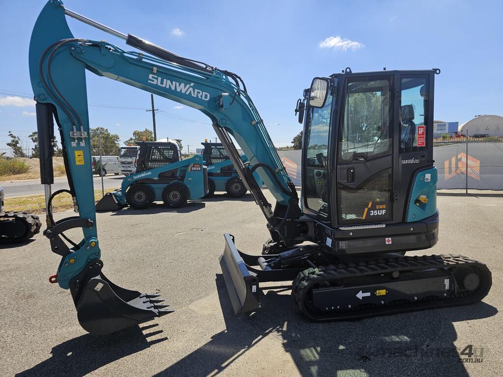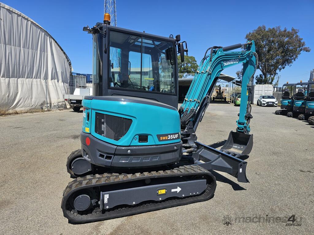 The Sunward SWE 35UF mini excavator is the largest mini excavator in the Sunward range. The zero-tail SWE35UF can handle bigger projects than its smaller companions, while also maintaining good performance, maneuverability, and speed on the job. With a ROPS / FOPS cab outfitted with A/C and heat, this machine can keep going no matter what. In the Sunward tradition to always offer the best value for money, the SWE 35UF is no exception since it offers many features and up to 5 years of warranty as standard, at the right price. Of course, because we know that safety and comfort should go hand-in-hand, the SWE 35UF keeps you safe and provides every comfort in all working conditions.