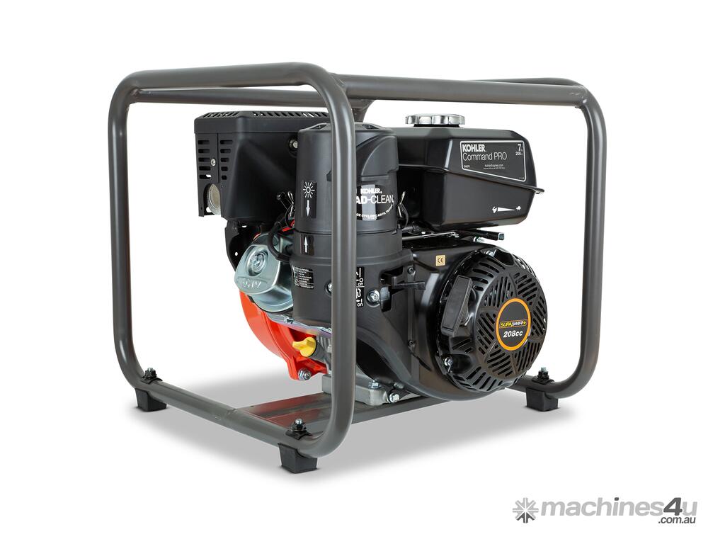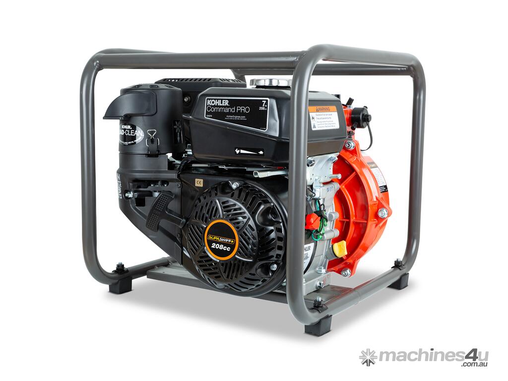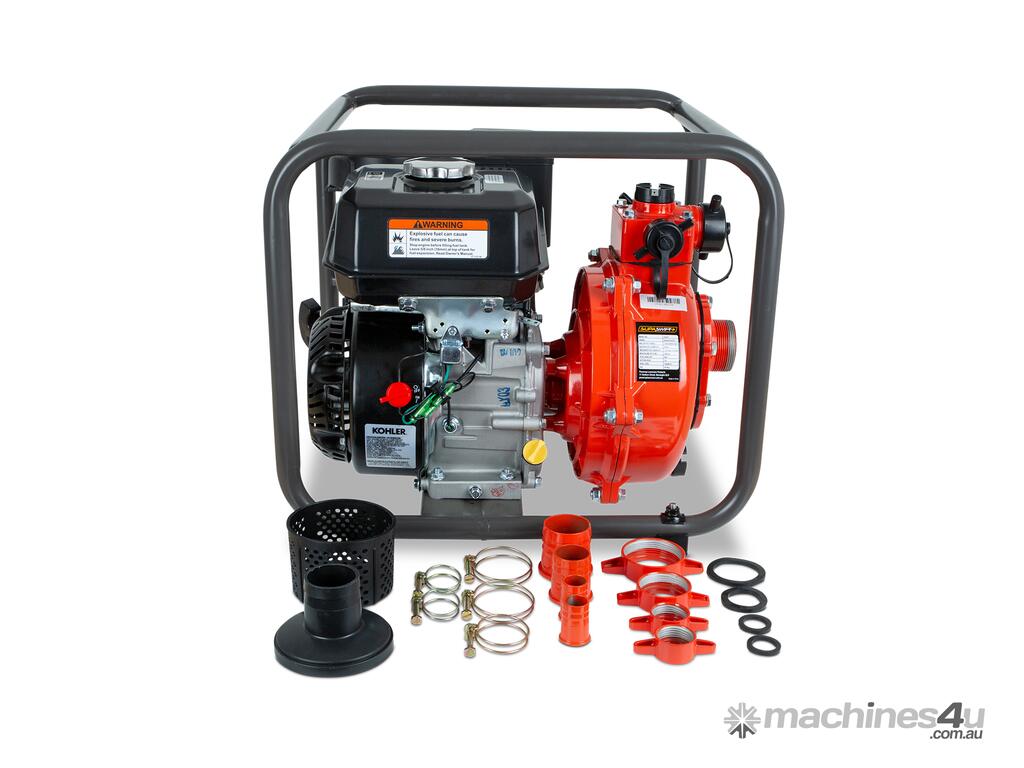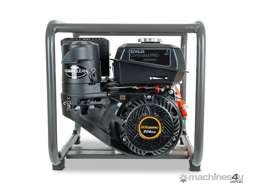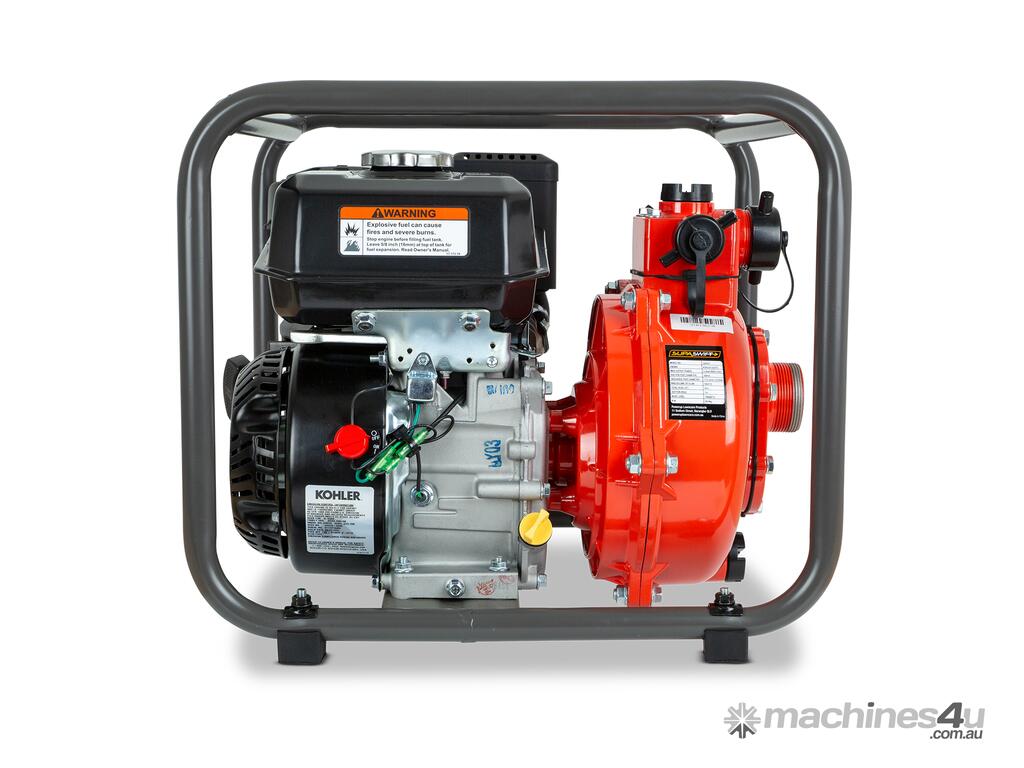 pressure. The 32KFFT SupaSwift firefighting pump runs on petrol, features a twin impeller and is powered by a Kohler CH270, 7.0 hp (5.2 kW) engine which features oil alert cut out. It has a maximum water flow of 300 litres per minute and has a total head of 80 metres.