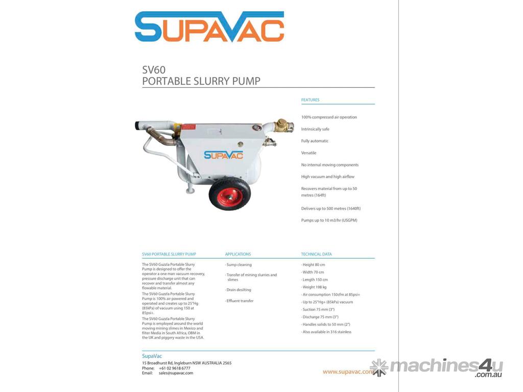 Supavac SV60 Vacuum Transfer Pump :      $7,727 AUD($8,500 Inc. GST)