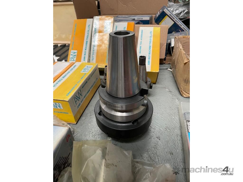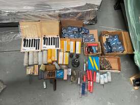 Assorted new and unused machine-tooling now surplus to our business. Includes a wide mix of BT50 and BT40 tool holders, Morse taper adaptors, drill sleeves, live centres, lathe tools, milling cutters, cutting inserts, and drill tooling.