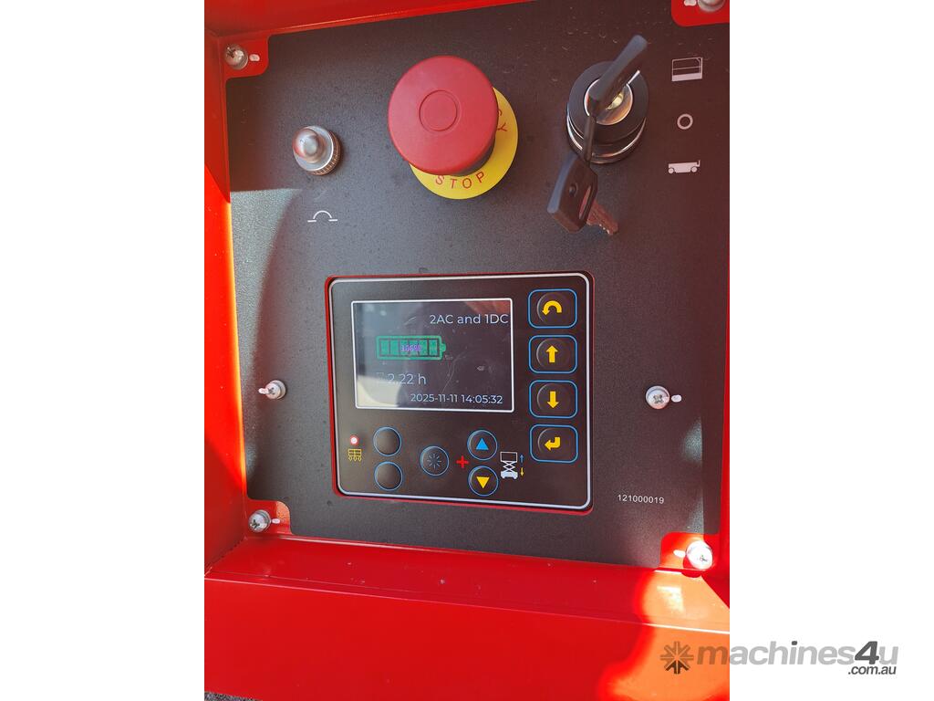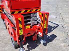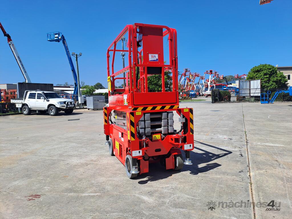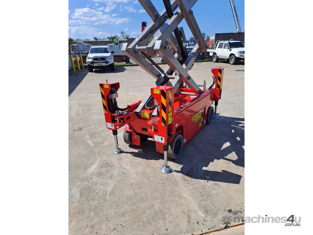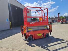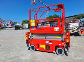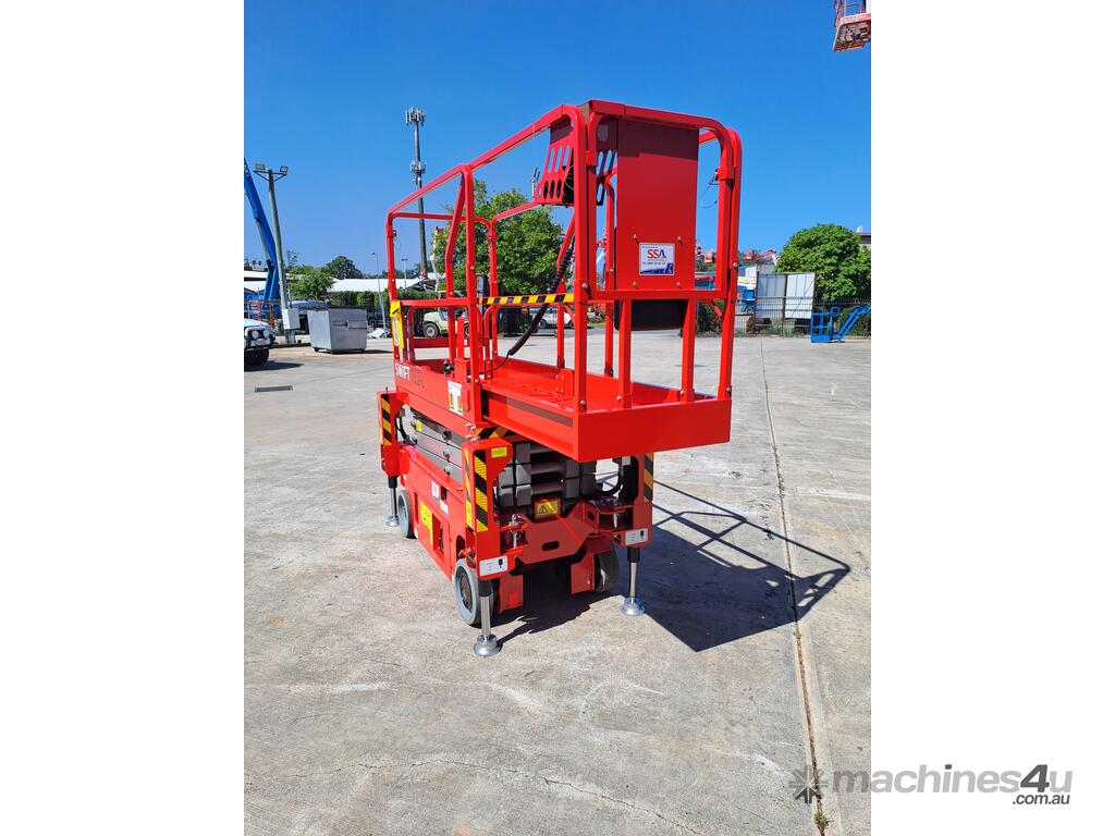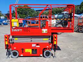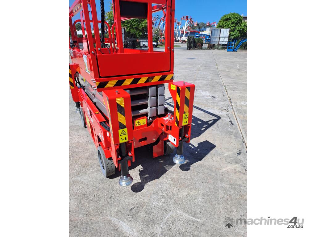 The very sort after and asked about 19ft. Electric Scissor lift with self leveling outriggers is now available , this machine has the ability to level 20 degrees side to side and 10 degrees front to back . The Swift 1932 L also features maintenance free Fullriver sealed batteries . LCD screen at the ground controls and Electric Drive . The outriggers can be swung inwards for getting through tight spaces . This machine also has the feature of once the outriggers are off the ground drive can be selected to save time while the outriggers fully retract . Also included but not pictured are protective non slip rubber feet for the outriggers to protect floors and to grip if required when on tilted surfaces .