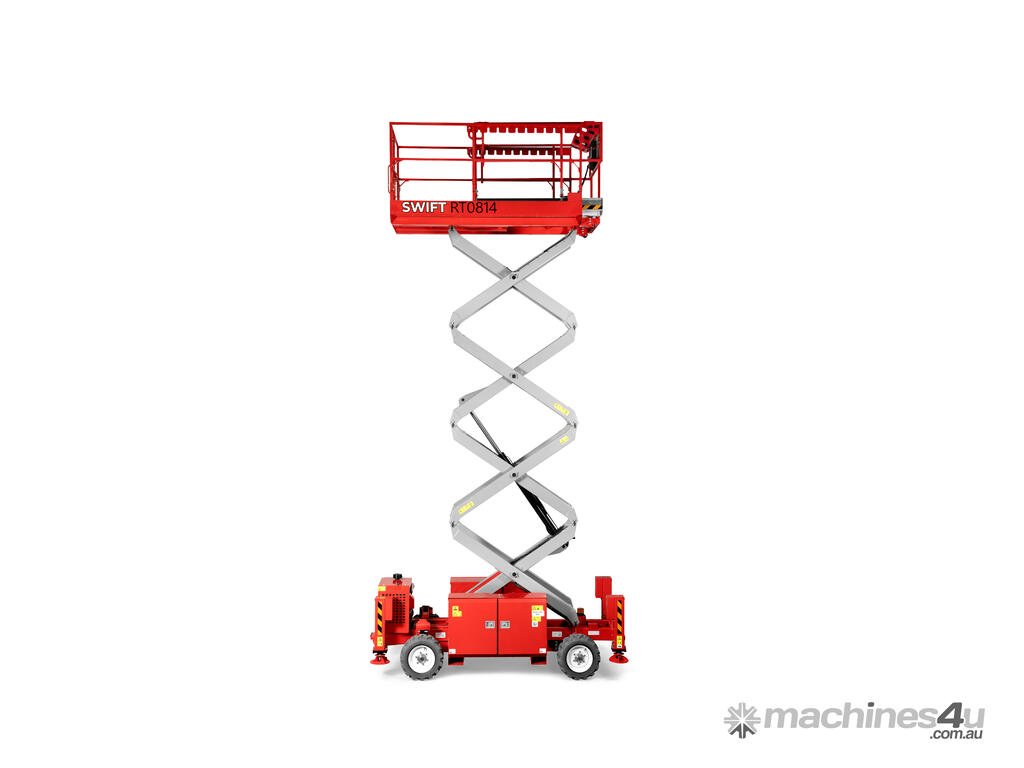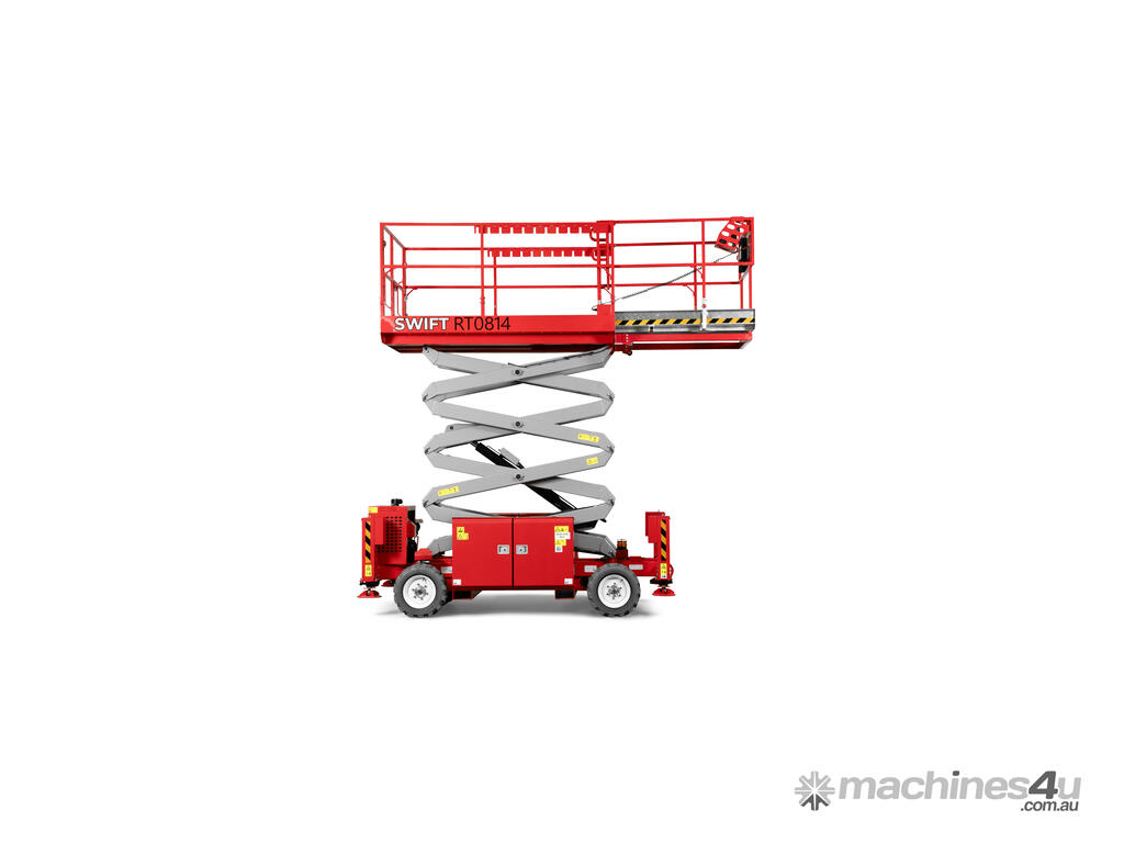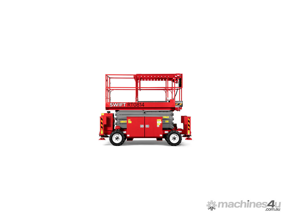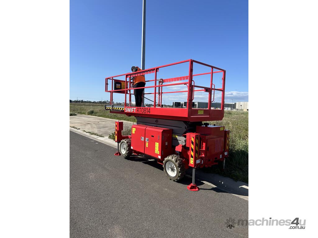 New from Swift Equipment. The RT0814 27ft All-terrain Scissor Lift offers durable, reliability and is perfect for outdoor work. With it’s easy to operate functions, the unit provides efficiency less time wastage while being used on site. With it’s narrow and compact structure the RT0814 is towable, saving on transport and associated costs.