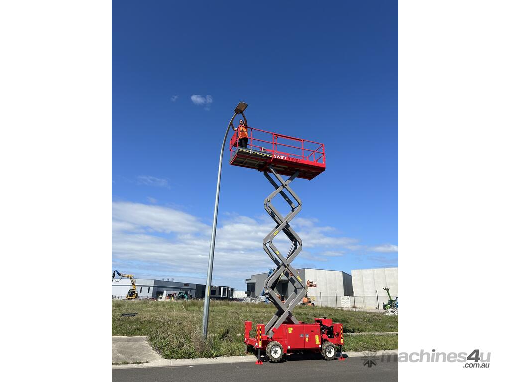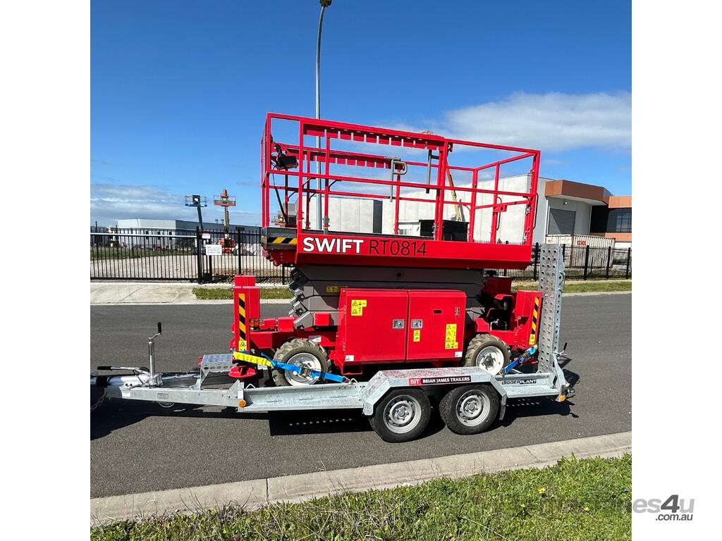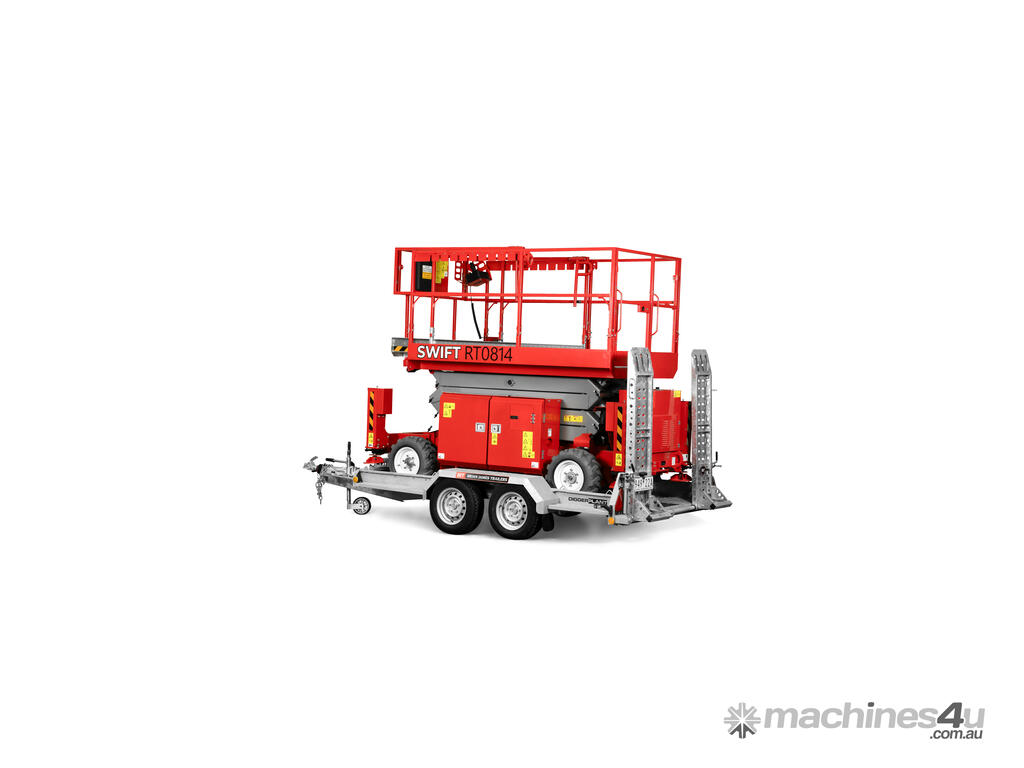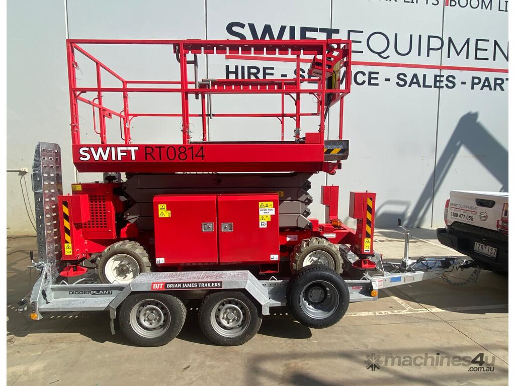 New from Swift Equipment. The RT0814 27ft All-terrain Scissor Lift offers durable, reliability and is perfect for outdoor work. With it’s easy to operate functions, the unit provides efficiency less time wastage while being used on site. With it’s narrow and compact structure the RT0814 is towable, saving on transport and associated costs.