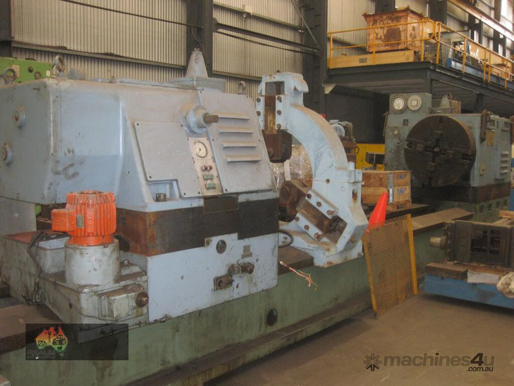 1600mm swing x 4.7m between centres with heavy-duty tail stock, we updated electrics, and three shear bed ways have fixed steady but need a packer, 44 tonnes dismantled
