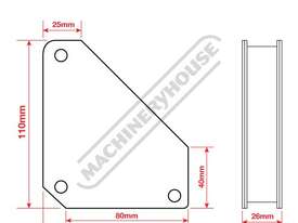 With the added benefit of a convenient on/off switch you can securely hold material while providing you with an unobstructed area for tack welds. Use the outer edges of the corner magnet for setting up materials at 45º & 90º.