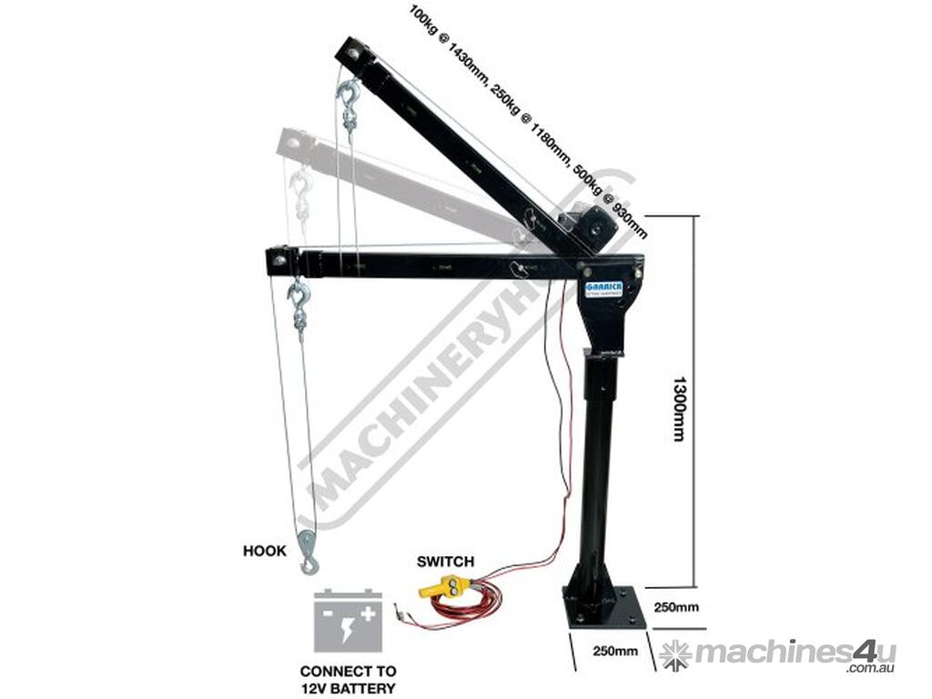 GARRICK LIFTING Swivel Crane - Truck or Ute UTECRANE500 *800kg Lifting Capacity 12V - DC Lifting Winch