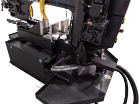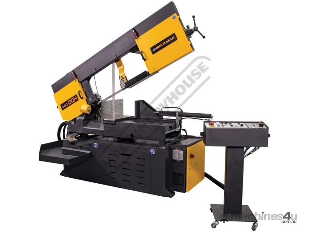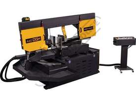 The European made BMSY-440DGH dual mitre up to 60°, semi-automatic band saw can cut a large 600 x 440mm rectangle. This saw can also cut up to 440mm round material at 90° and with a hydraulic clamping mechanism that allows the operator to change the mitre angle in seconds. The inverter controlled infinitely variable speed is easily adjusted to suit desired blade speed via the control dial mounted conveniently on the control panel. The vice uses a full stroke hydraulic clamping system and after the cut is complete the blade stops and the head lifts to the start position ready for the next piece to be cut.