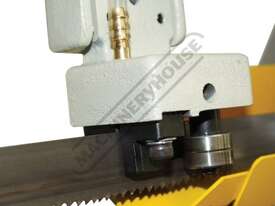 The cutting operation works automatically with the weight of the head providing the cutting force and a limit switch shutting the machine down when the cut is complete. The weight of the head is counterbalanced by an adjustable hydraulic damper to control the feed rate, an excellent machine choice for maintenance shops, steel fabrications, and engineering workshops. . If you're looking for this size range of machine, you'll have a tough time finding a better metal-cutting band saw with these features and at this price, It represents excellent value.