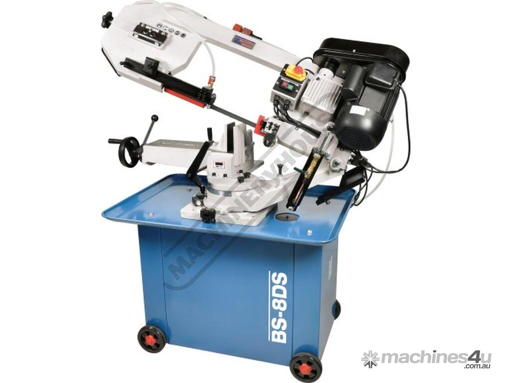 The BS-8DS medium-duty dual swivel head metal cutting band saw offers great value for money. The major points of this machine are the swivel head, four-blade speeds, adjustable feed rate, and built-in coolant system.