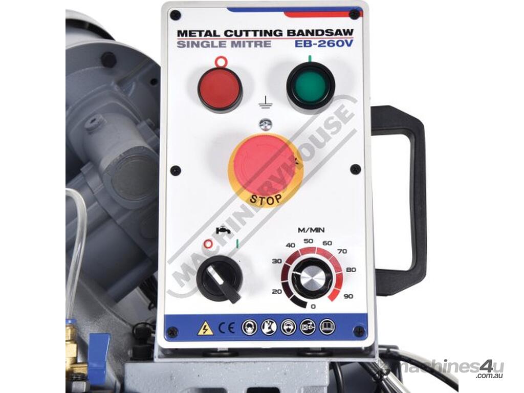 HAFCO-METALMASTER Swivel Head Metal Cutting Band Saw EB-260V Electronic Variable Blade Speed 20-90mpm, Mitre Cuts Up To 60º, Quick Action Material Clamp & Includes Hydraulic Downfeed Control 225 x 180mm (W x H) Rectangle Capacity