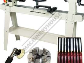 HAFCO-WOODMASTER Swivel Head Wood Lathe & Tooling Package Deal WL-20 Ø370mm Swing x 1100mm Between Centres Variable Speed 500 ~ 2000rpm, Swivelling Headstock also Includes 100mm Scroll Chuck & Insert, 8 Piece Wood Turning Tool Set, & Bowl Sanding Tool