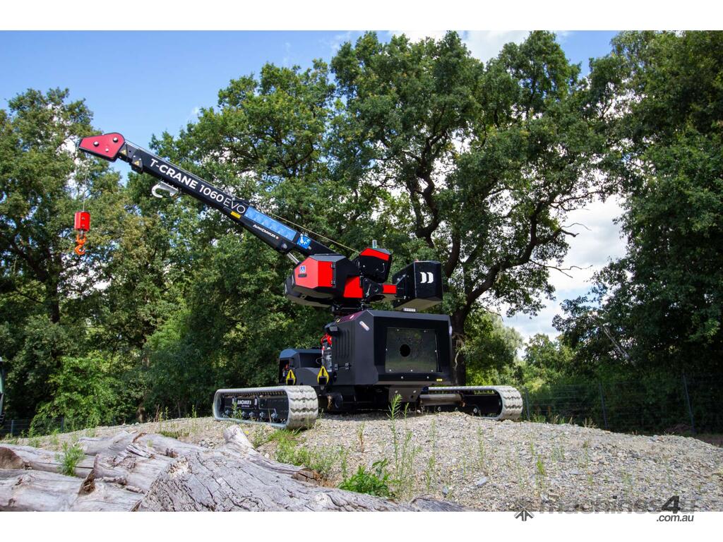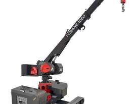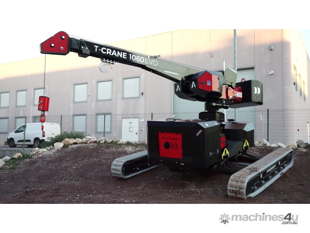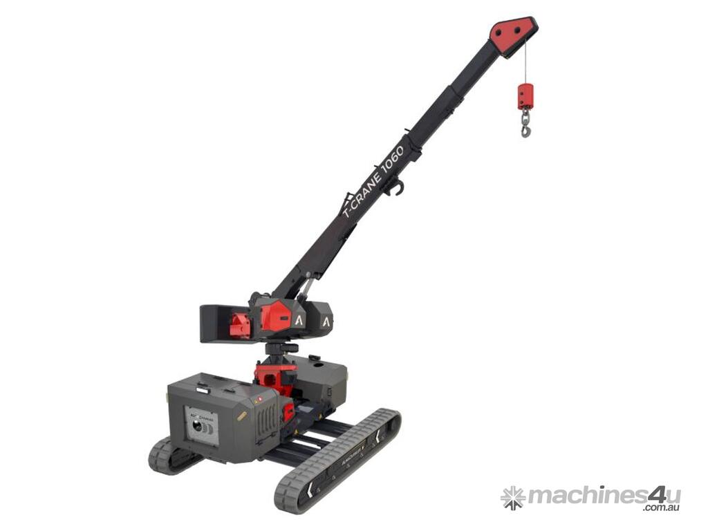 Equipped with a standard remote control, the T-Crane 1060 easily travels and carries loads up to 990kg, featuring a 7.7m lifting height with a 6.1m maximum working radius.