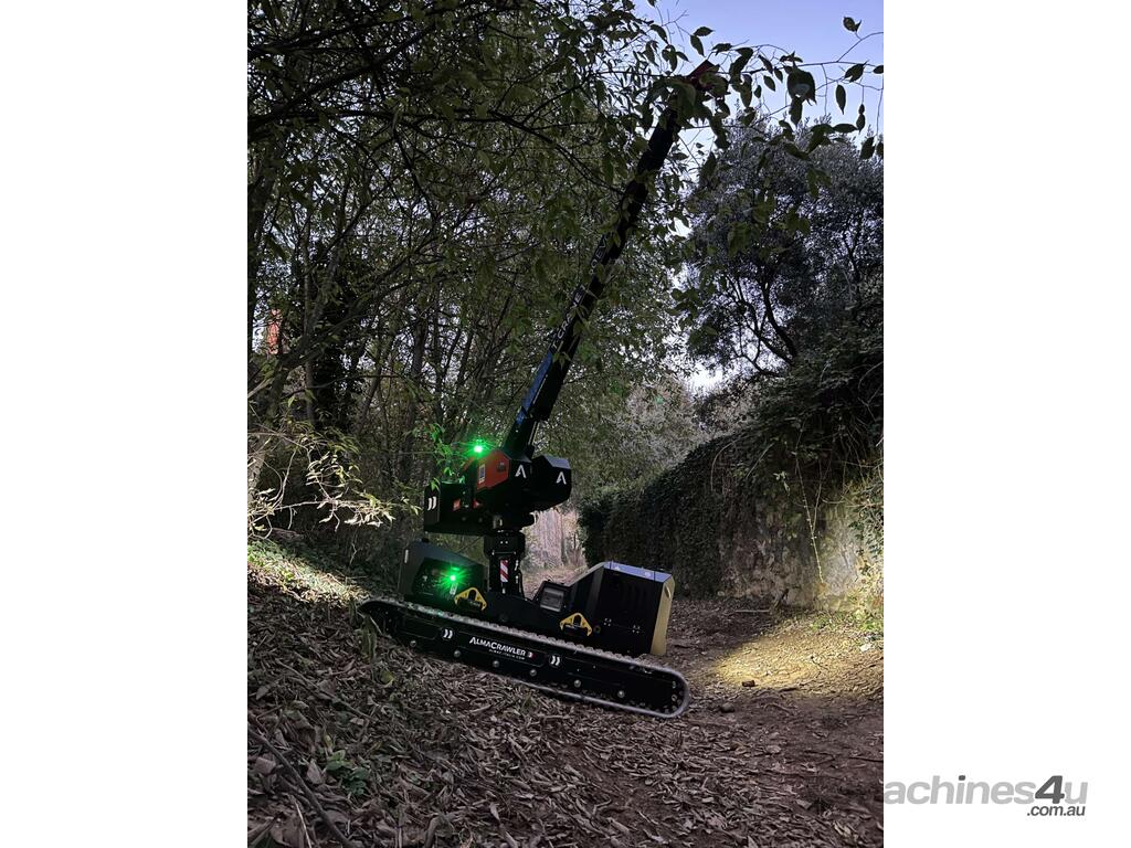 The first pickmini-crane with AlmaCrawler self-levelling technology, available either with a Yanmar engine or a full-electric 300Ah Lithium battery pack.