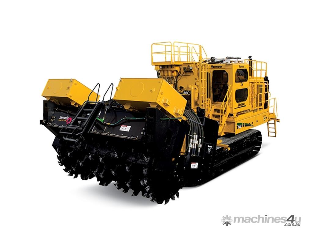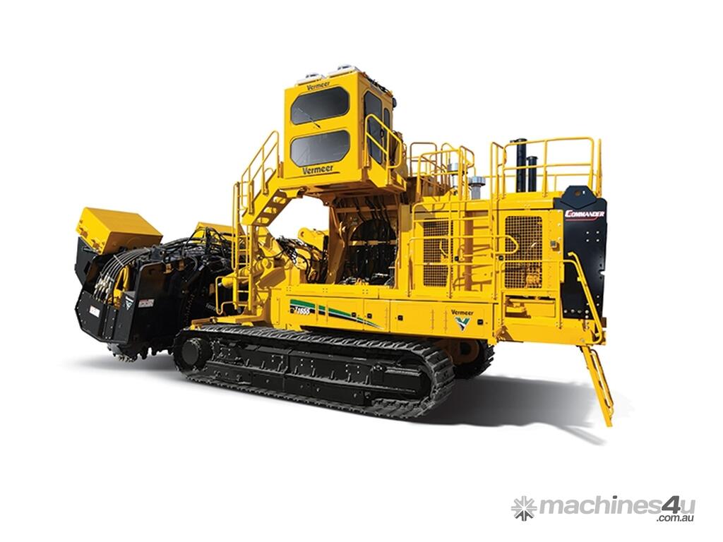 The T1655 Terrain Leveler SEM combines the proven Vermeer Commander 3 track trencher platform with the patented Terrain Leveler® surface excavation machine (SEM) attachment, delivering unmatched performance in surface mining operations. Powered by dual CAT engines generating 1,200 hp (895 kW), the T1655 is engineered for efficiency, operator comfort, and durability in the most demanding mining environments.