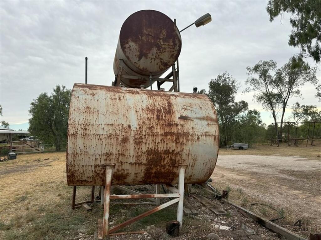 Low Tank in Picture: 1,500 Gallon fuel Tank. Available via MRE Online Auctions, located in Walgett NSW. Unsure of Litreage.