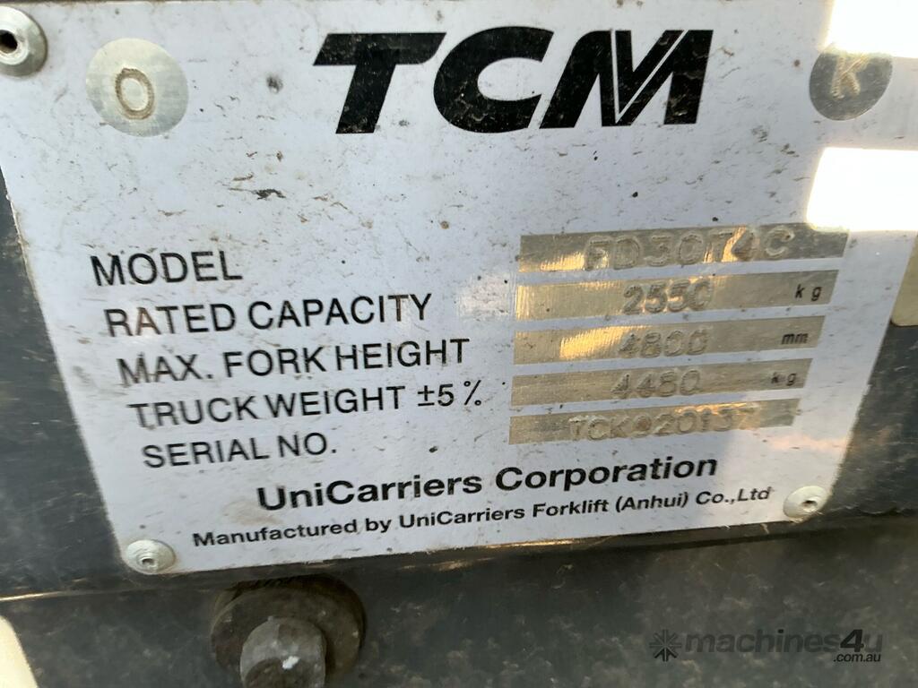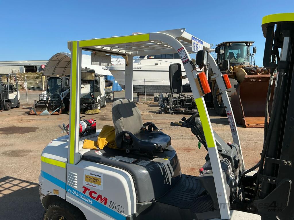 No C/P,TCM,FD30T,Forklift,Engine #: 7EC9080,2430 CC,4 Cyl,Diesel,Odometer not visible,1379 (Hrs. Showing on Hour meter),Colour: White,Rego. No: NP(1ERR118), Unregistered WA,Serial No: TCK920137,ROPS No: undefined,Sold with No Plates,Key No: 46