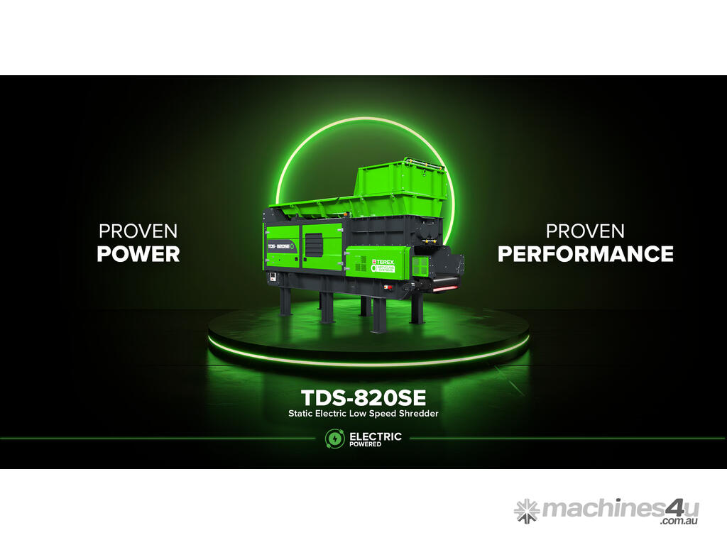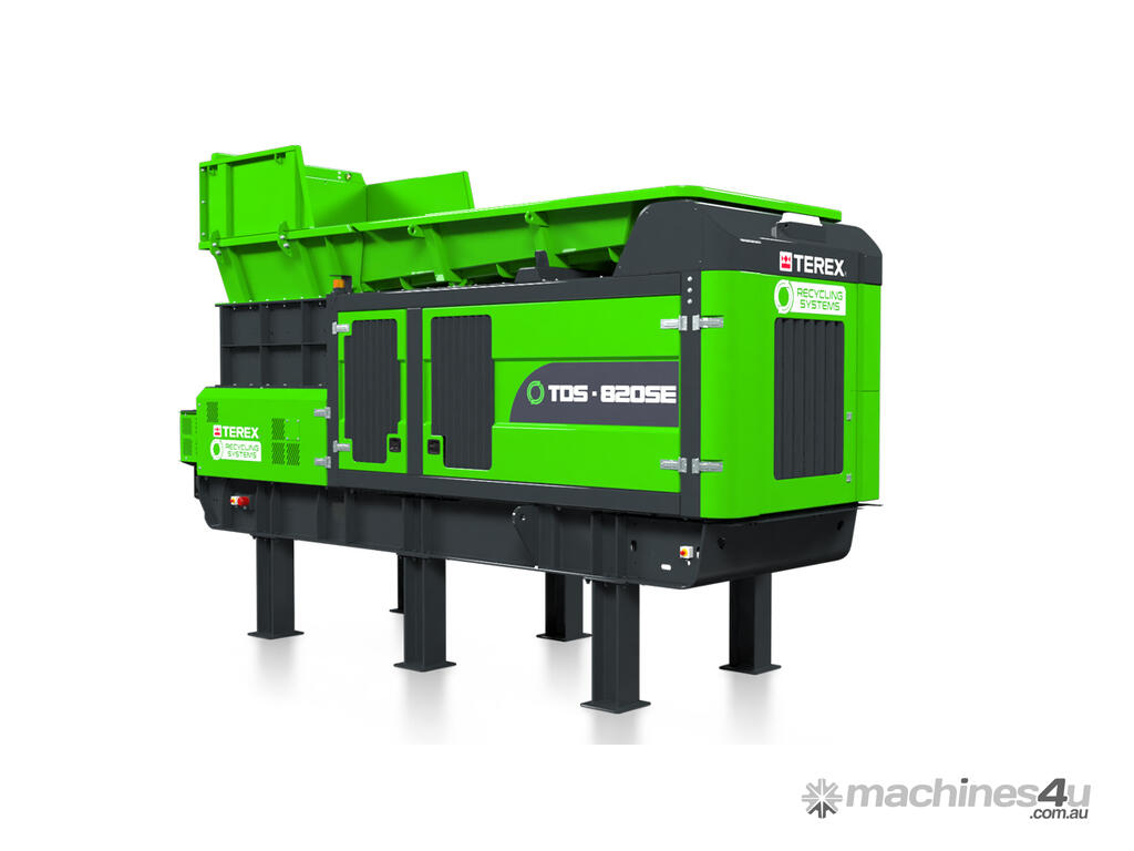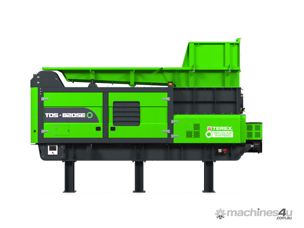 Terex Recycling System's TDS-820SE is a versatile Static Electric Low Speed Primary Shredder designed to efficiently handle a wide range of materials, including construction and demolition (C&D) waste, commercial and industrial (C&I) waste, wood waste, green waste, POPs, bulky waste, and municipal solid waste (MSW). Its powerful twin shafts, equipped with aggressive teeth, deliver exceptional shredding performance, ensuring thorough material reduction.