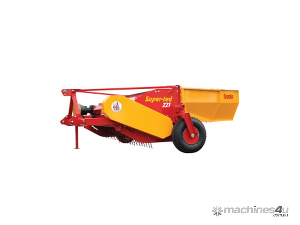The Super-ted 221 has a 2.2m. wide pick-up and is suitable for silage (will do two 3m. swaths side by side), straw from all modern combines and hay.