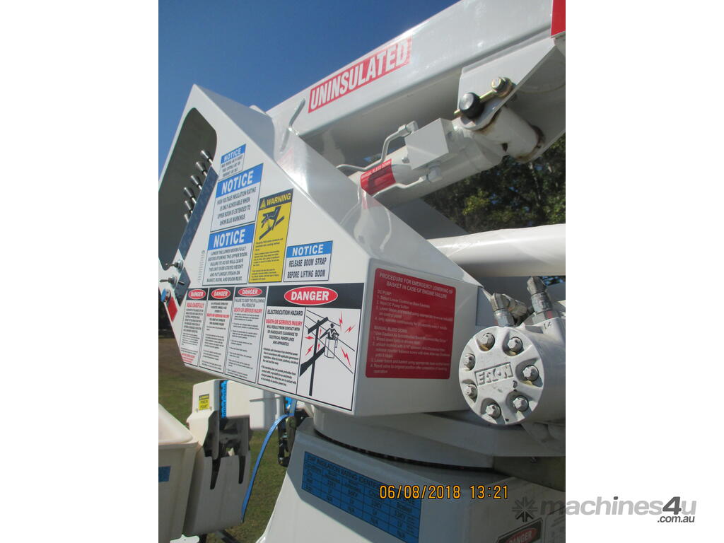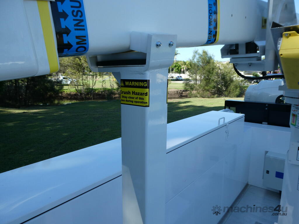 Safety Features: Boom stabilizer/interlock, engine start/stop, and insulated boom components for safe operation near electrical hazards