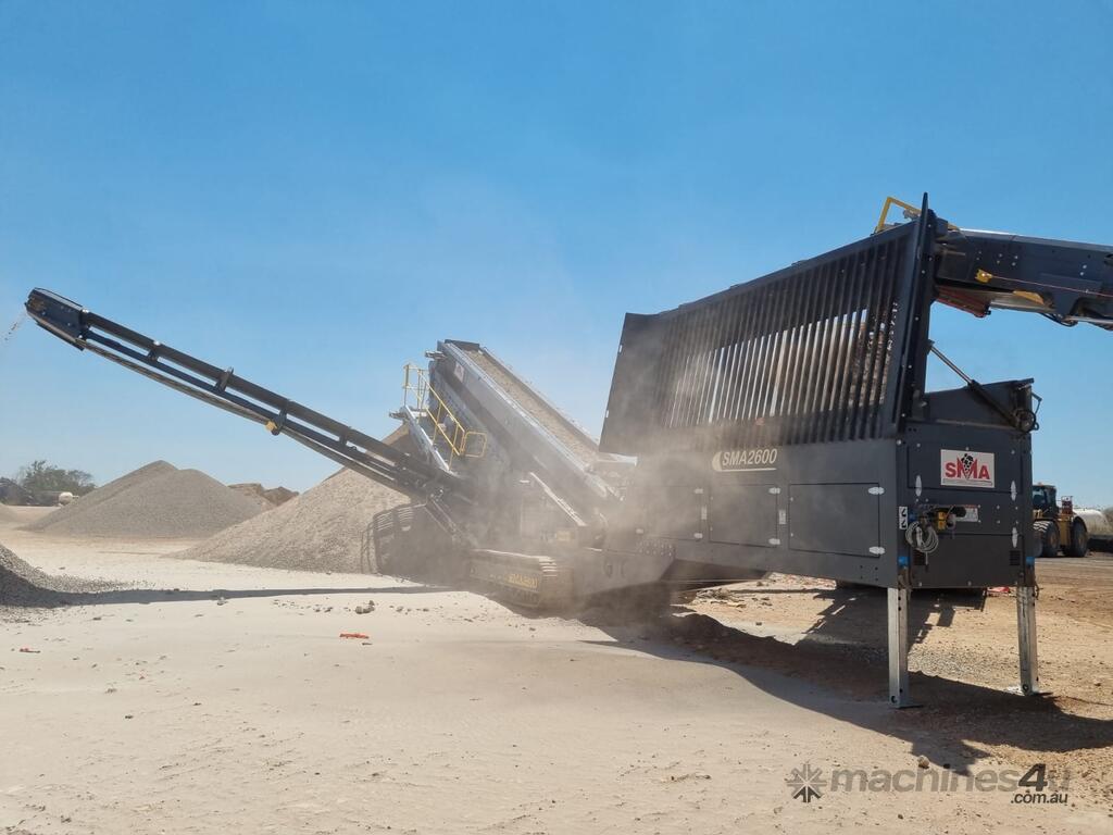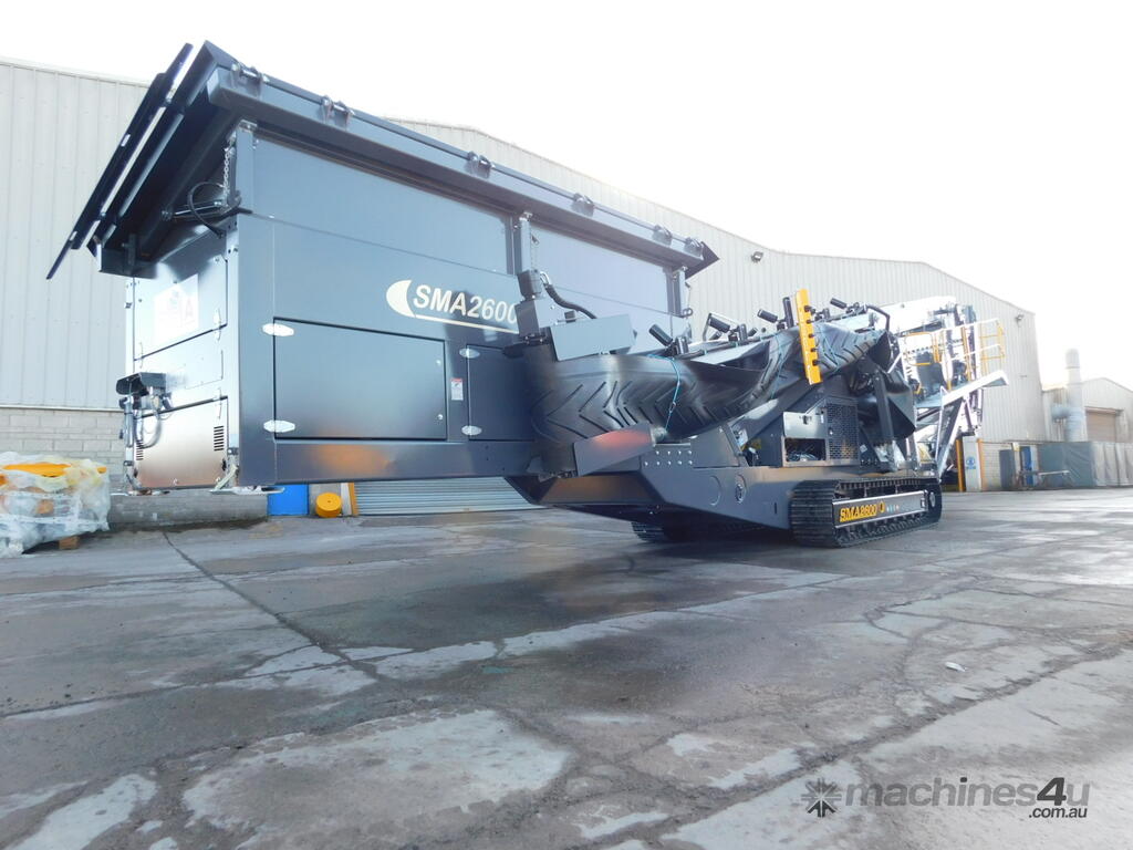 NEW Tracked Mounted TESAB 2600 (MCCloskey S190) Heavy Duty Incline Screen. Featuring a 1200mm feed conveyor, Integrated hydraulic folding stockpiling conveyors, 20 x 5 adjustable, high energy screenbox capable of producing up to 650tph. It is suitable for applications including quarrying, crushing circuits, sand, gravel, coal, topsoil and woodchip.