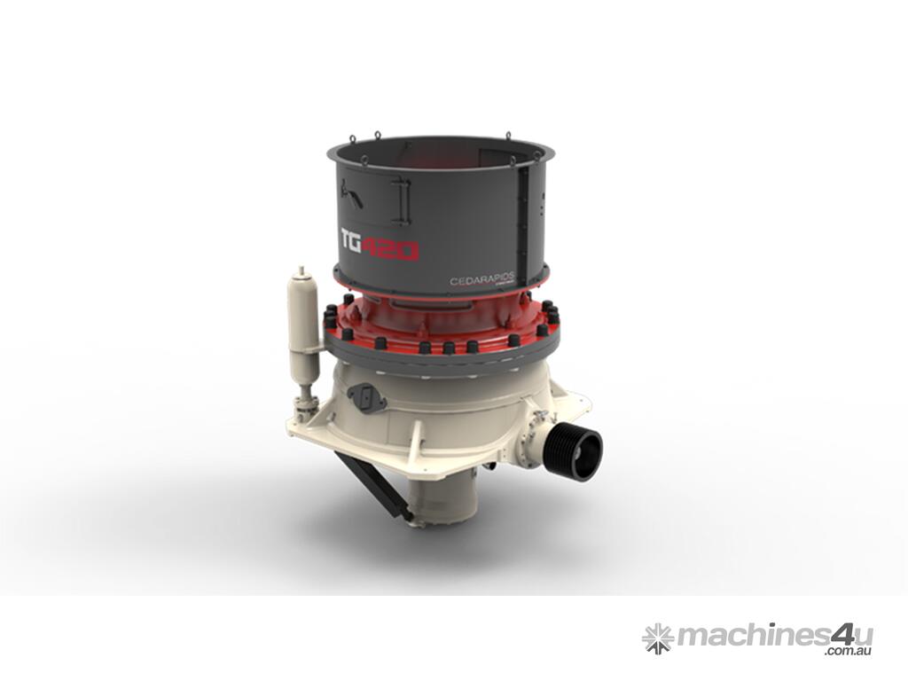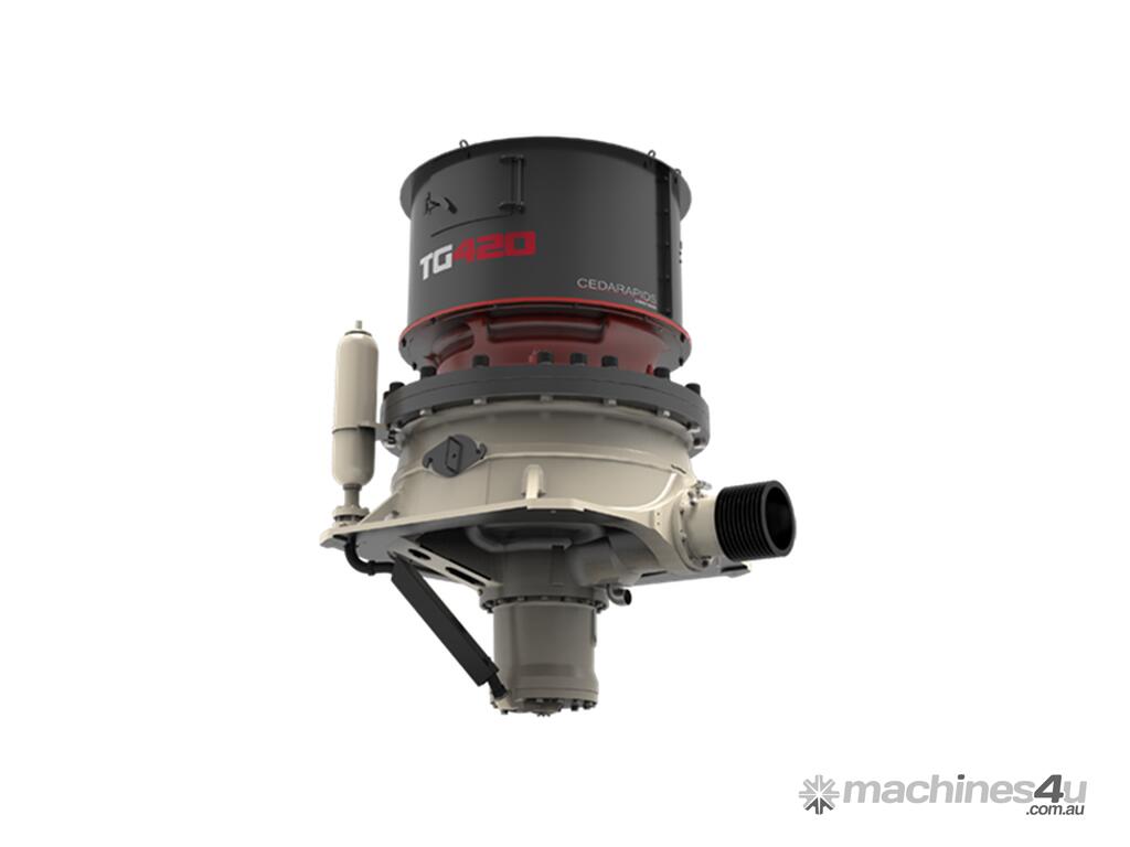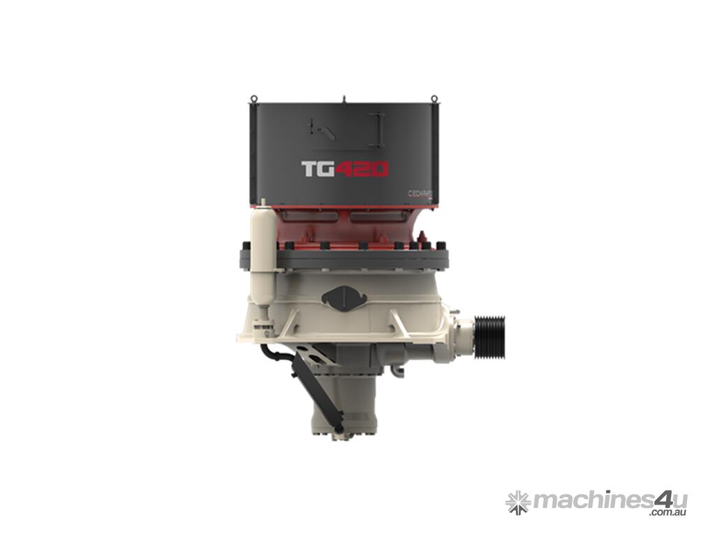 TG SeriesTG420Cedarapids TG420 Bronze Bushing Cone Crusher with 400 hp and a maximum feed size of 7.5", is ideal for mining, quarries, and demolition applications. The TG420 is impressive and can be easily and efficiently set up to deliver the best cost per ton cubicle product. From coarse secondary right through to fine quaternary, the TG