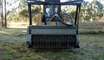 UML SSL 150 VT Mulcher with fixed teeth rotor for skid steer loaders between 75 and 120 HP, equipped with a high flow kit. The most popular and renowned mulcher in the FAE line. This newly redesigned model has a lower profile with excellent visibility and a reengineered mulching chamber that allows more material to enter at once, thus increasing productivity. The new door operating system consists of a chain-drive operated by two cylinders located in the side housing of the head. Its fully enclosed body prevents debris from entering the frame area, thus keeping it cleaner. The option....