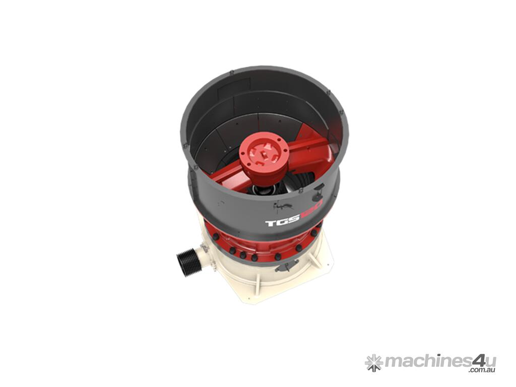 TGS SeriesTGS120The Cedarapids TGS Series Cone Crusher is the ideal choice for large feed secondary applications and can even handle control-fed sand & gravel primary applications. Sharing the same base mount, drivetrain, and power rating as its TG equivalent, the 120 hp TGS120 Cone accepts 65-80% larger feed sizes than other cones in its class. Its steep-angled head design boosts throughput and ensures consistent performance, even with an on/off feed.The TGS maintains maximum feed size and stable output gradings with a constant feed opening throughout liner wear. Standard advanced automation controls, multiple cavity options, and adjustable eccentric throws make it highly adaptable to any application, delivering exceptional productivity and a lower cost per ton.