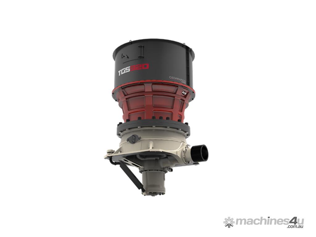 TGS SeriesTGS320The Cedarapids TGS320 Cone Crusher is a robust 335 hp crusher engineered for high-capacity secondary applications and adaptable enough for primary use in controlled sand & gravel operations. Designed to handle 65–80% larger feed sizes than similarly powered cones, the TGS320 delivers exceptional performance with its steep head angle and ability to maintain throughput even during intermittent feeding.This crusher is built for consistent results, offering a constant feed opening across the full wear life of the liners, minimizing fluctuations in gradation and preserving feed capacity. With standard advanced automation, the TGS320 provides real-time control and monitoring, while a wide range of crushing chamber options and adjustable eccentric throws allow for precise customization to meet diverse application needs.