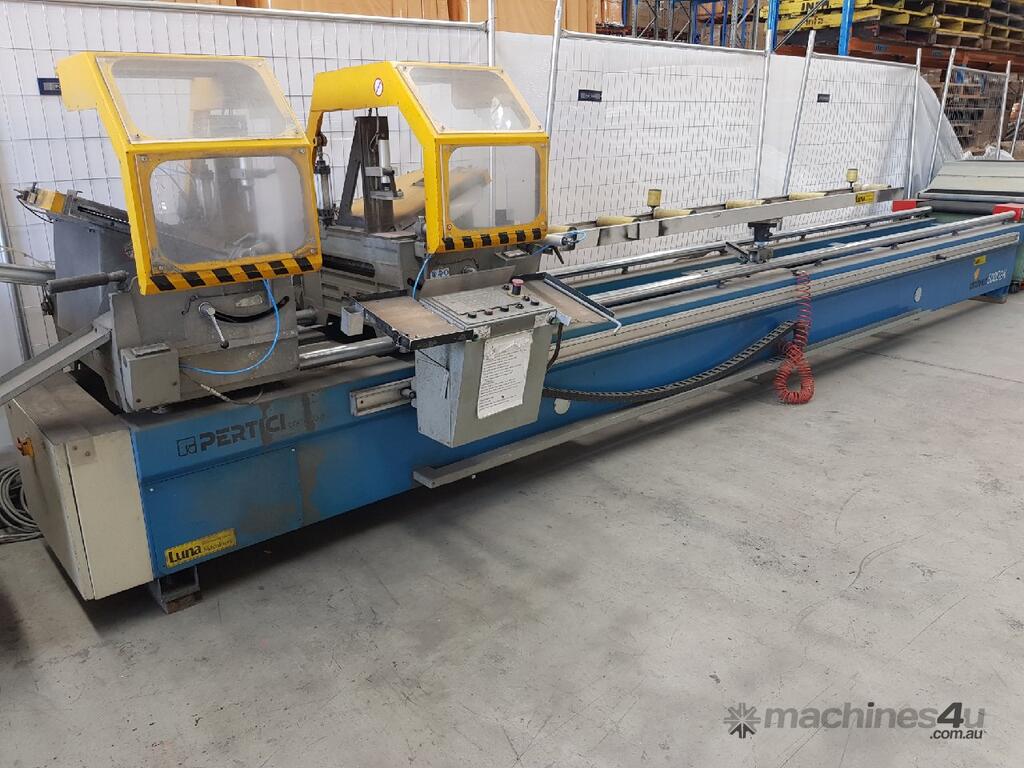 PERTICI UNIVER 500D2K Double Mitre Saw, 6000mm (6 metre) Capacity, Suit Aluminium, Metal, Plastic, PVC, Timber etc., Made in Italy, 500mm Blades, Safety Hoods, Digital Positioning Controller, Fully Adjustable Vertical and Horizontal Pneumatic Clamping, Electro Magnetic Measuring System with Accuracy of Plus or Minus 0.1mm, Infeed Profile Support Roller Track, 70mm dia Swarf Extraction Outlets, Cutting Heads Tilt to Mitre Past 45° to 22½ degrees - POA * SOLD 5/3/19 *