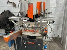 ALFAMACCHINE by Forli T400 TWIN V 45deg MITRE SAW MADE IN ITALY, 2 x 400mm BLADES, PNEUMATIC SEMI-AUTO OPERATION - VERTICAL CLAMPING, INFEED/OUTFEED OUTRIGGER TABLES/FENCE/STOPS Suit SECURITY SCREEN DOORS, PICTURE FRAMES etc - ALUMINIUM/TIMBER/PLASTICS etc, HEAVY DUTY, CURRENT MODEL, VERY GOOD CONDITION
