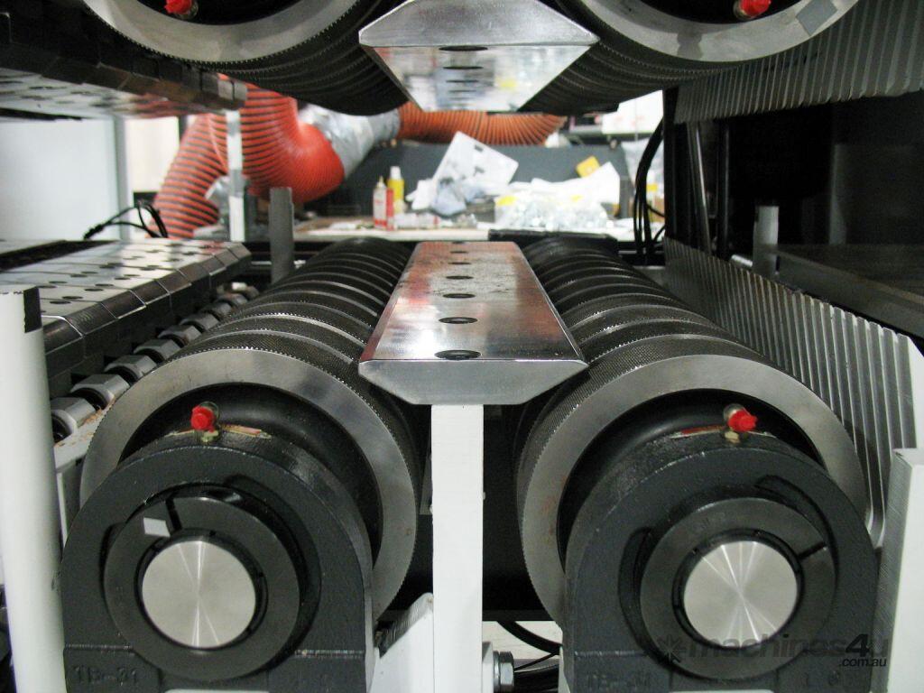 The Timesavers Yieldsaver is still the top-of-the-line top and bottom knife & abrasive planer in the industry. The machine self-centers the board to get the most useable wood and doesn't split cupped boards, creating a much cleaner surface for the defector scanners.