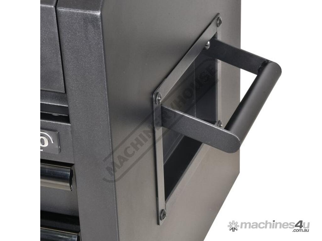 Locked and loaded with features, like gas struts for easy access, key lockable security, and ball-bearing drawer slides – these boxes are as tough as your tools. With base corner protection and foam mats lining the drawers, your gear stays in prime condition as you push or pull your toolboxes with the oversize handles that can be mounted on either side.