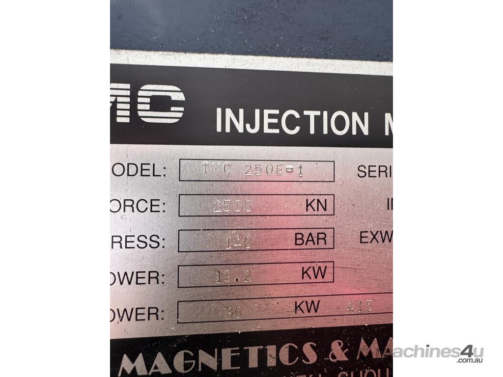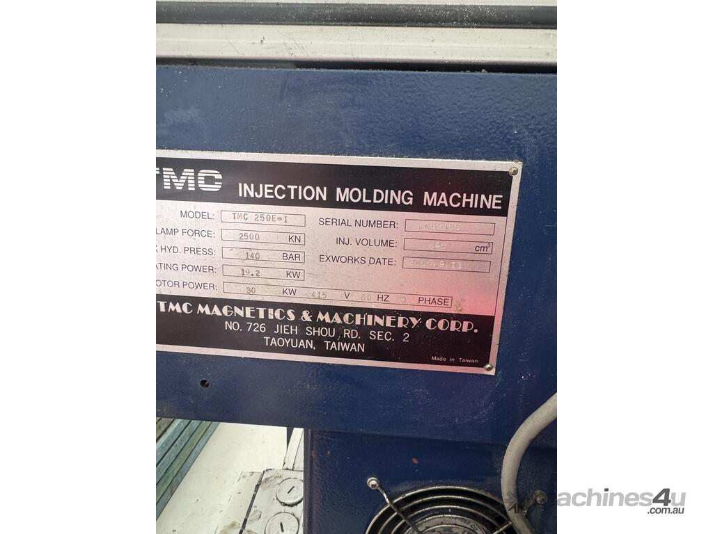 -This TMC 250E-1 injection moulding machine has been recently purchased and is offered for sale due to insufficient power availability at the current site.