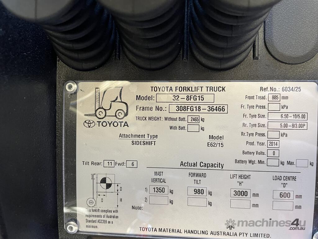 TOYOTA 2014 8FG15 DELUXE MODEL S/N 36466 LPG 3 METER 2 STAGE MAST 1.5 TON 1500 KG CAPACITY