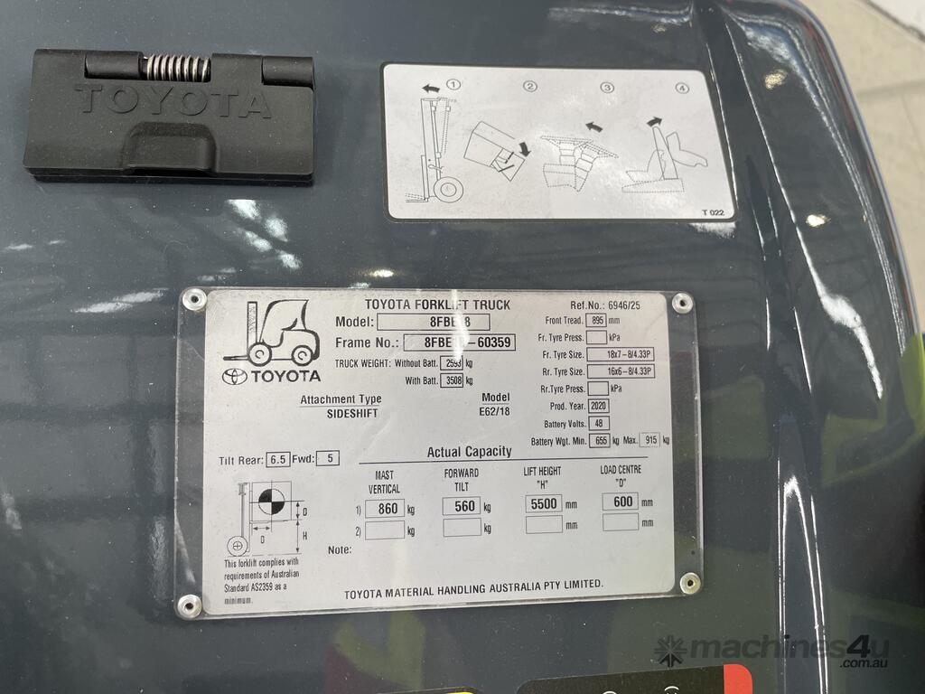 TOYOTA 8FBE.8 TON 1800 KG CAPACITY ELECTRIC FORKLIFT 5500 MM 3 STAGE MAST