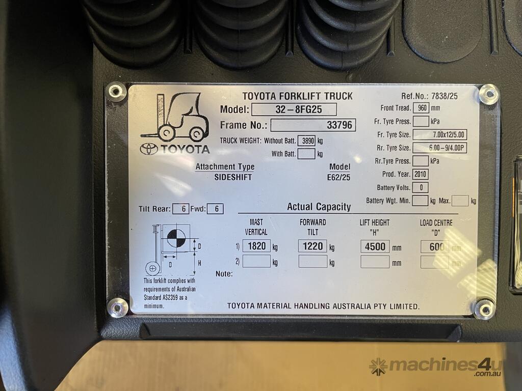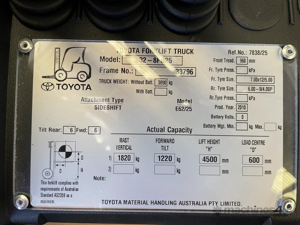 TOYOTA 8FG25 33796 DELUXE MODEL 2.5 TON 2500 KG CAPACITY LPG/GAS FORKLIFT 4.5 M 3 STAGE CONTAIER MAST