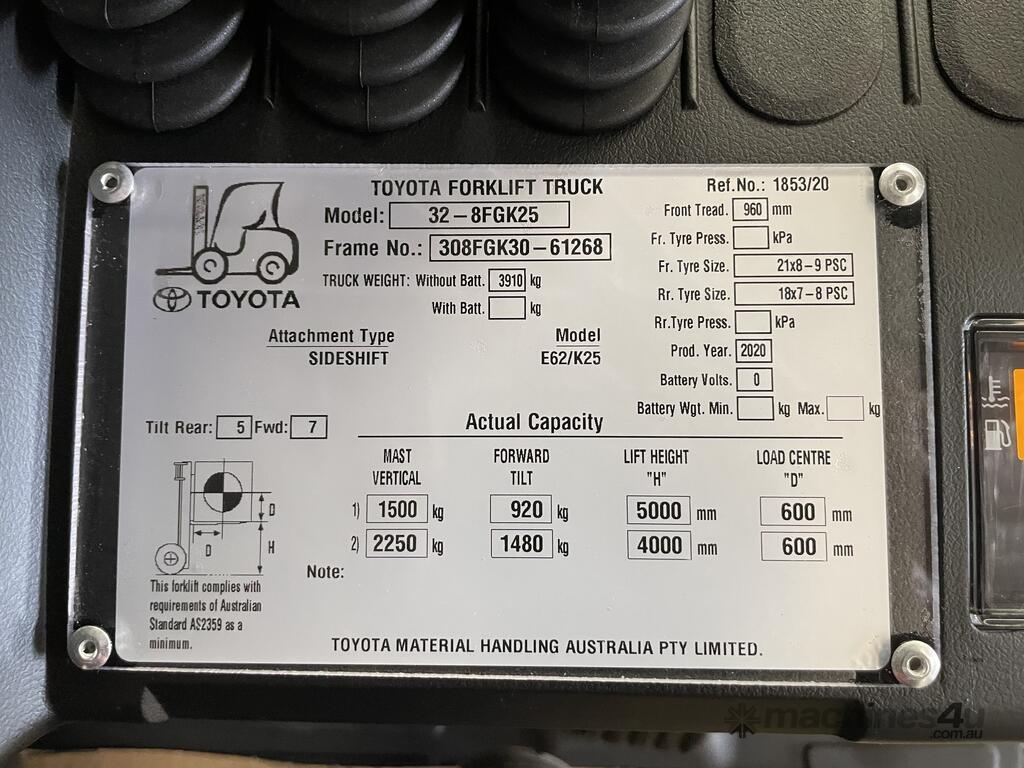 TOYOTA 8FGK25 DELUXE MODEL 2020 BUILD 8 SERIES COMPACT 2.5 TON CAPACITY LPG GAS FORKLIFT 5000 MM CONTAINER MAST